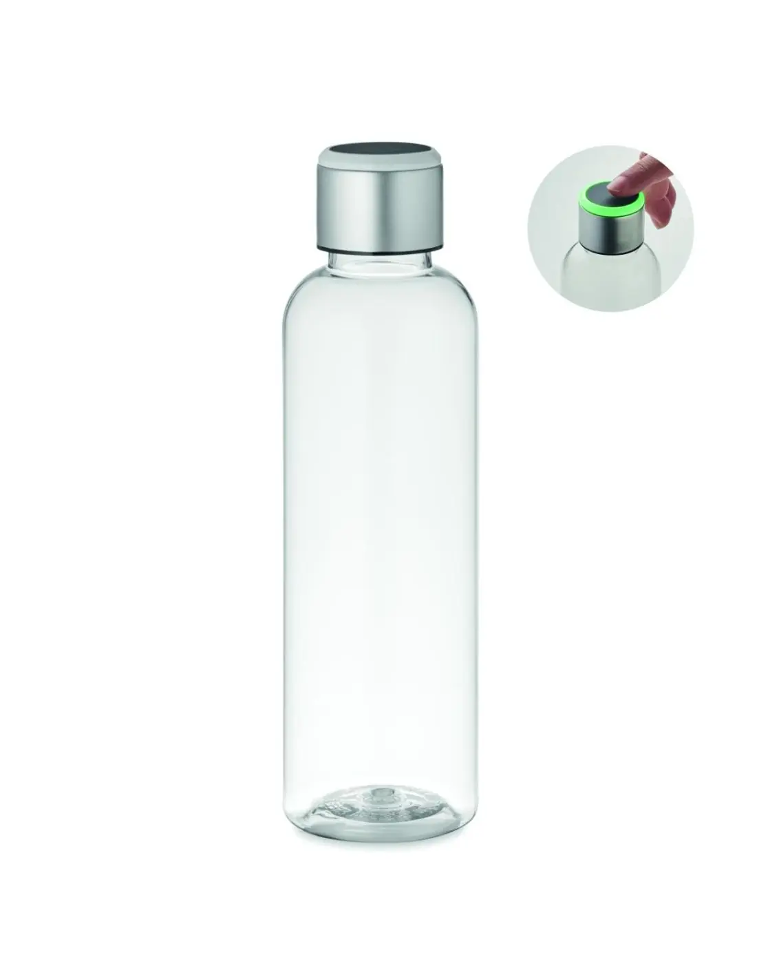 Botella de Tritan™ con tapa de acero y función recordatorio hidratación. La luz del sensor se enciende cada hora para recordarte cuándo es el momento de beber. Incluye 1 pila CR2032. Capacidad: 500 ml.