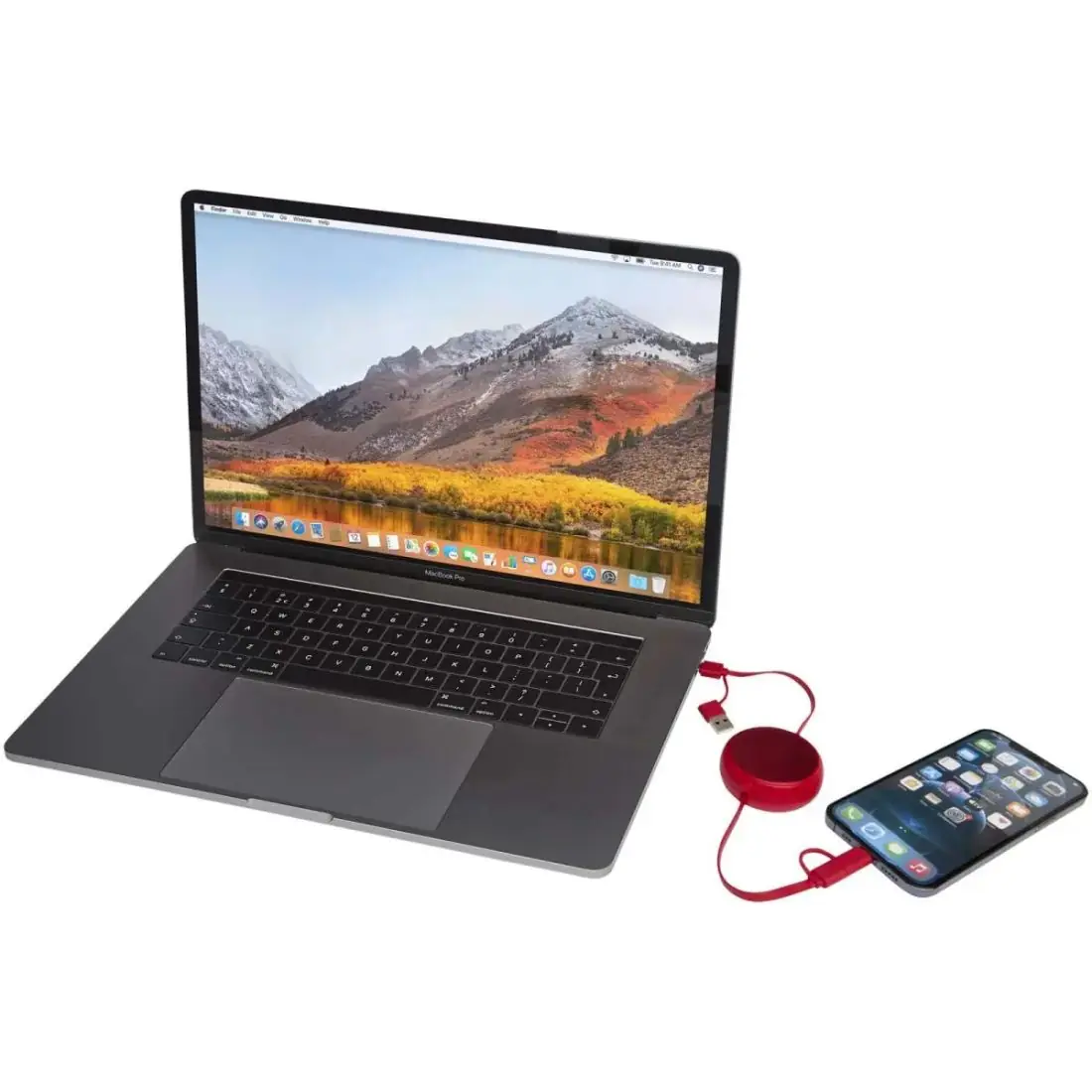 El cable 5 en 1 de sincronización de datos y de carga rápida de 45 W retráctil está hecho de plástico reciclado con un elemento de aluminio reciclado duradero y elegante que lo convierte en una...