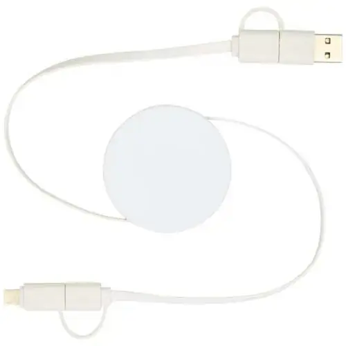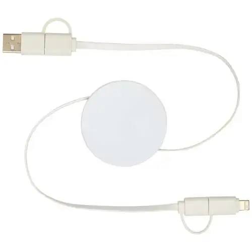El cable 5 en 1 de sincronización de datos y carga rápida de 40 W retráctil está fabricado con plástico reciclado. El cable cuenta con un conector de entrada USB A y otro tipo C, además de un...