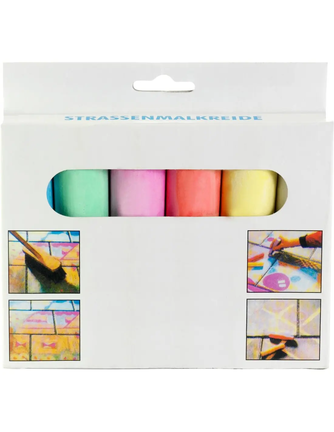 Caja de cartón con 6 tizas grandes.