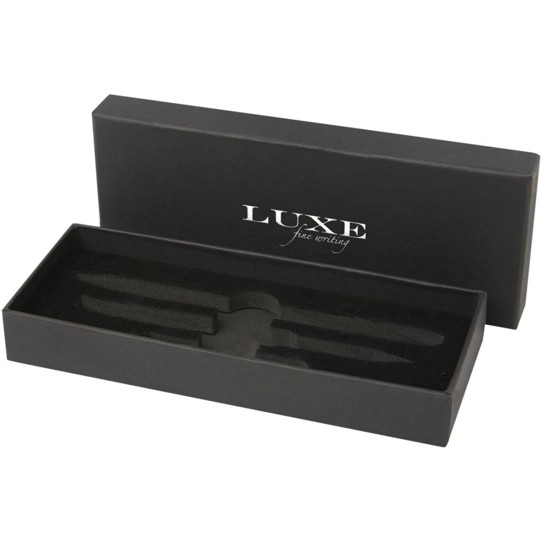 Esta caja de regalo para escritura está diseñada para que se puedan combinar dos modos de escritura diferentes y proporcionar una experiencia de escritura fina y flexible. Puede combinarse con el bolígrafo stylus o el bolígrafo con mecanismo de presión , y con el rollerball o la pluma . Las piezas de escritura no están incluidas en el precio de la caja y se han de pedir por separado.