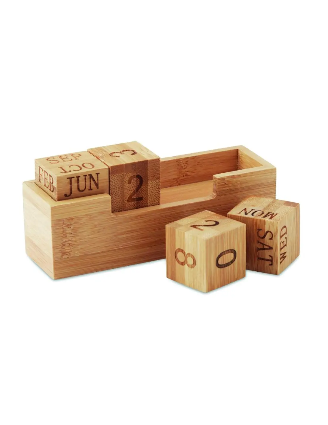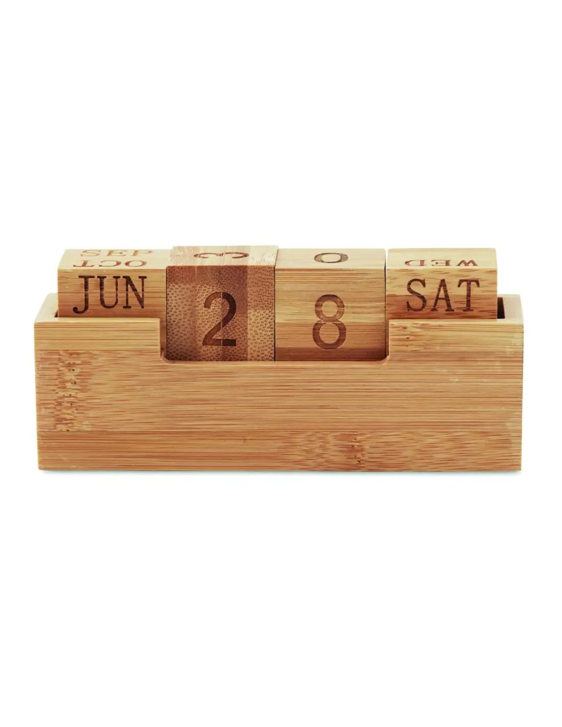 Taco de calendario perpetuo de bambú para escritorio. El bambú es material natural, el color del articulo puede variar.