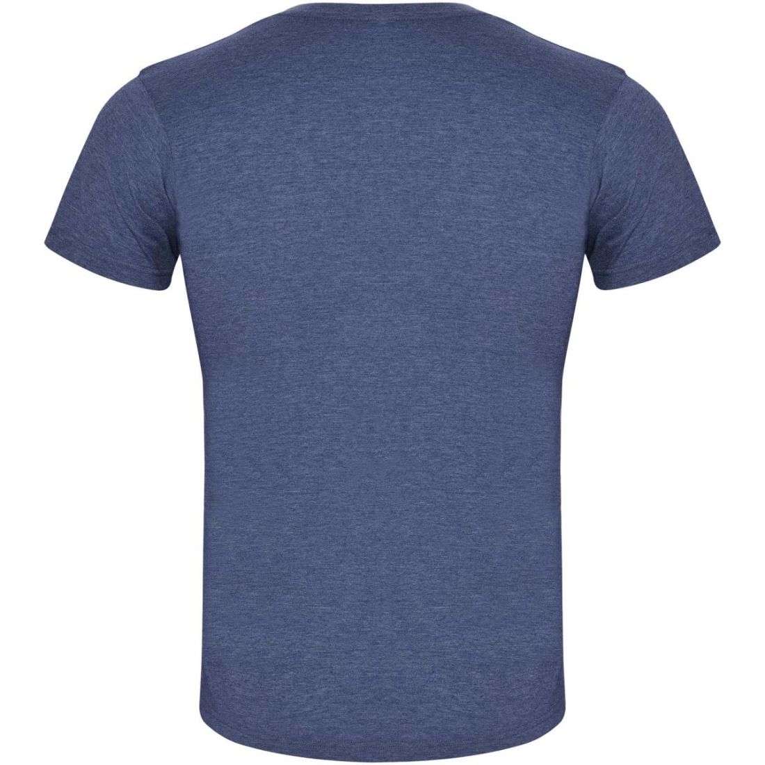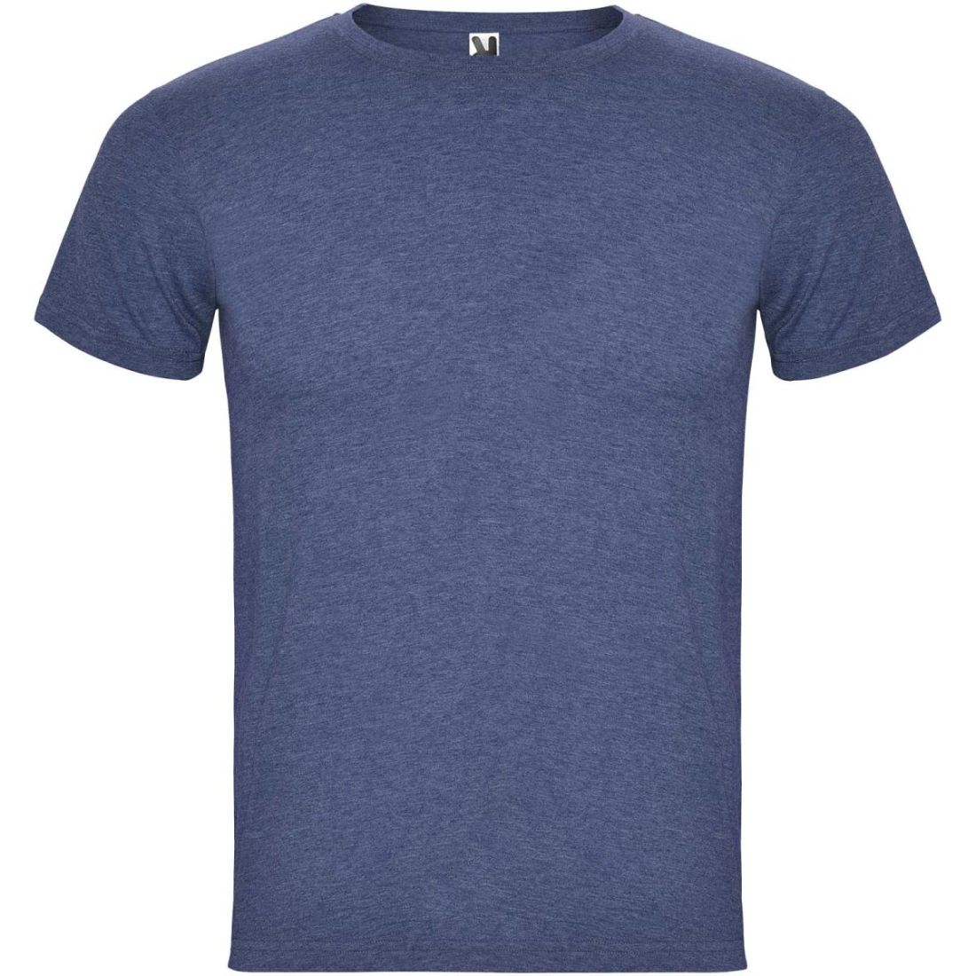 Camiseta de manga corta con efecto jaspeado. Cuello redondo de canalé 1 × 1 con costuras interiores cubiertas reforzadas. Tejido tubular. Etiqueta extraíble.
