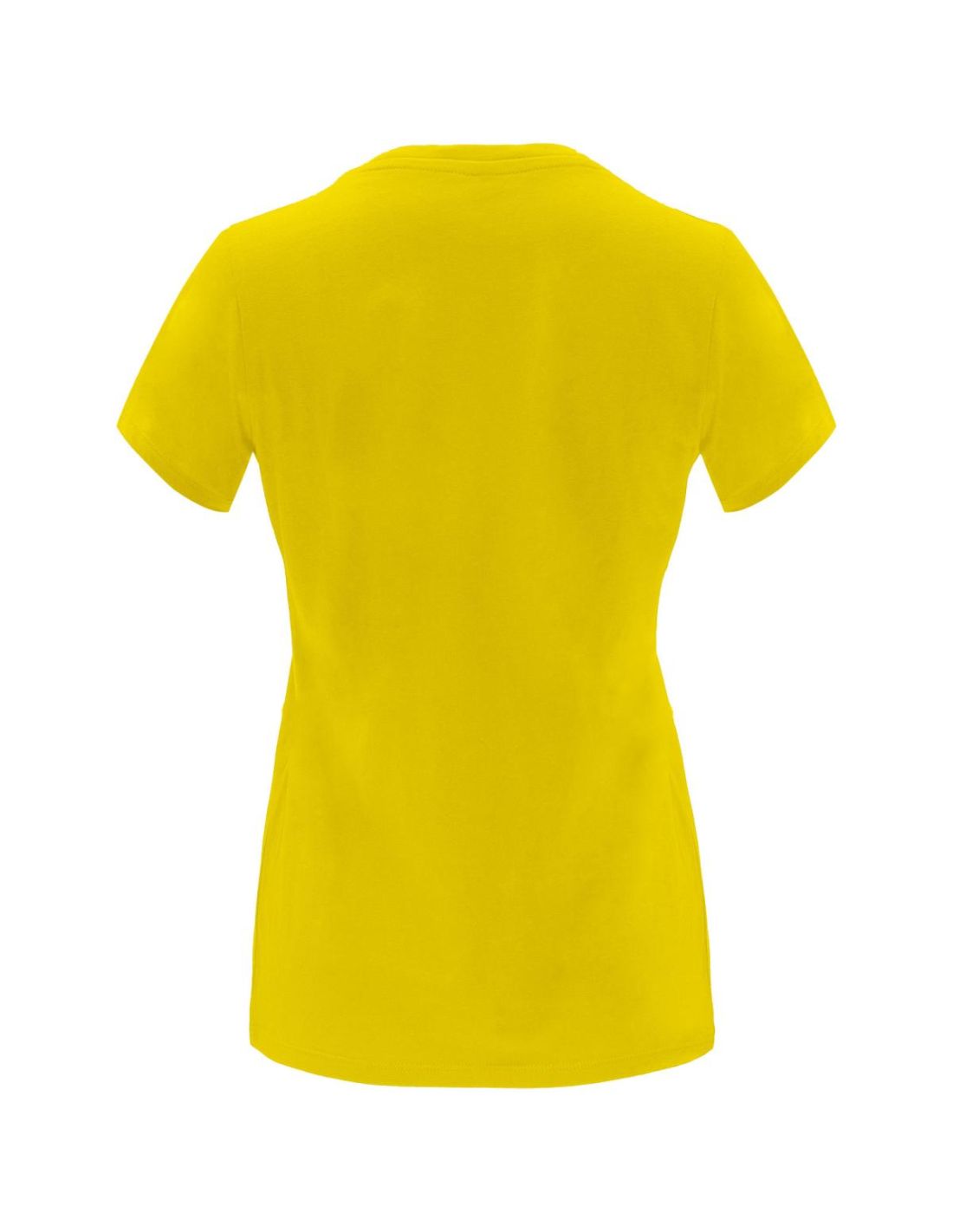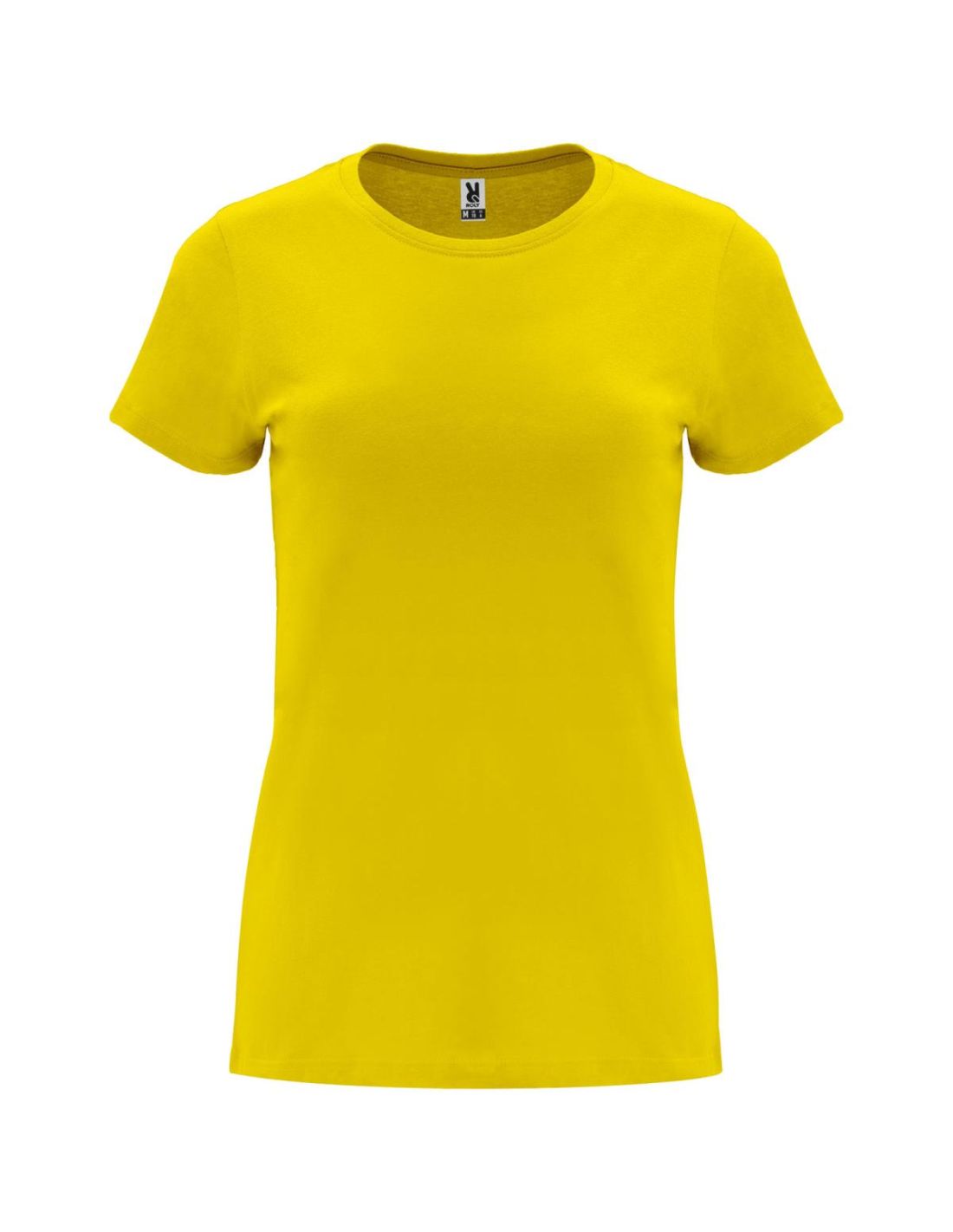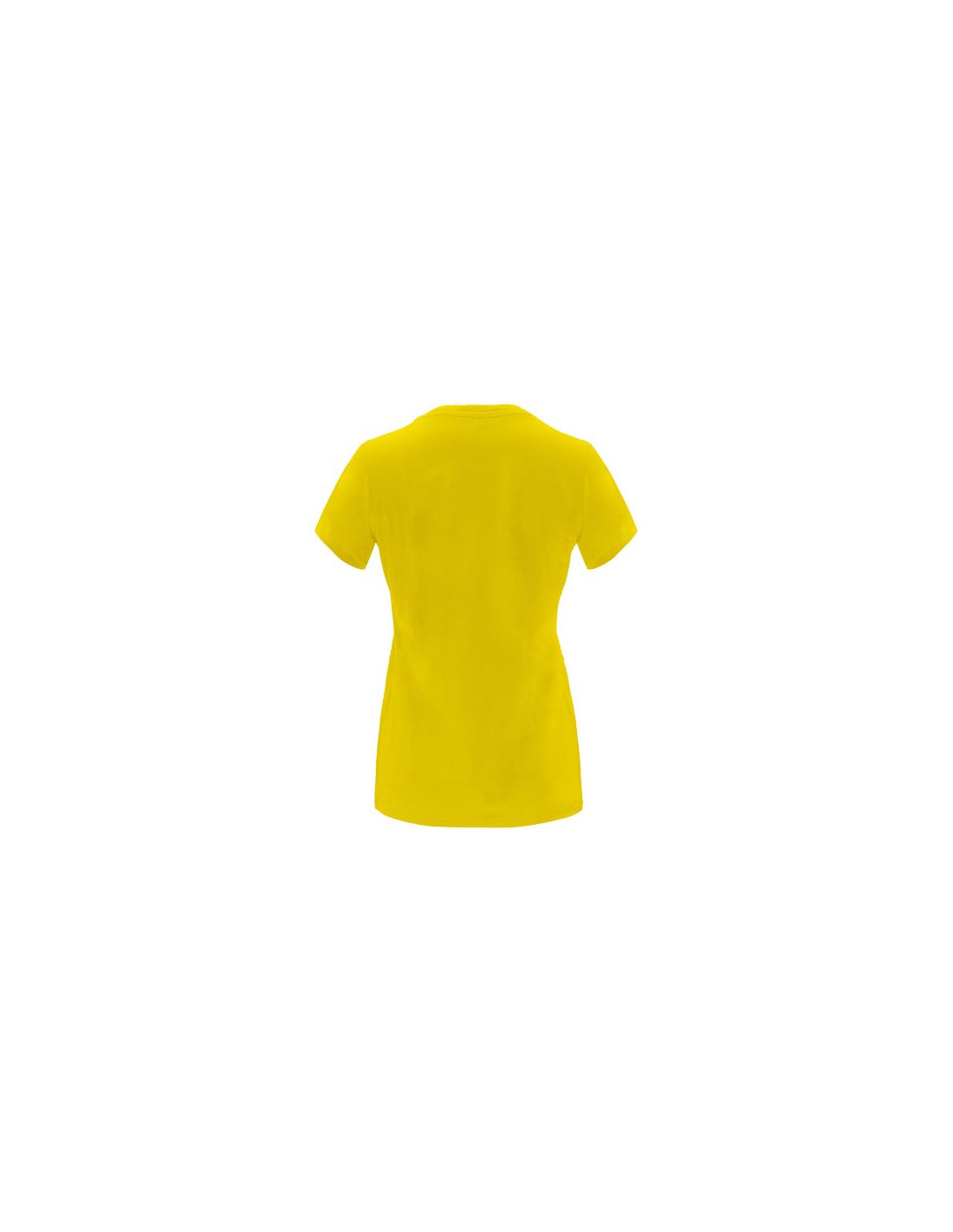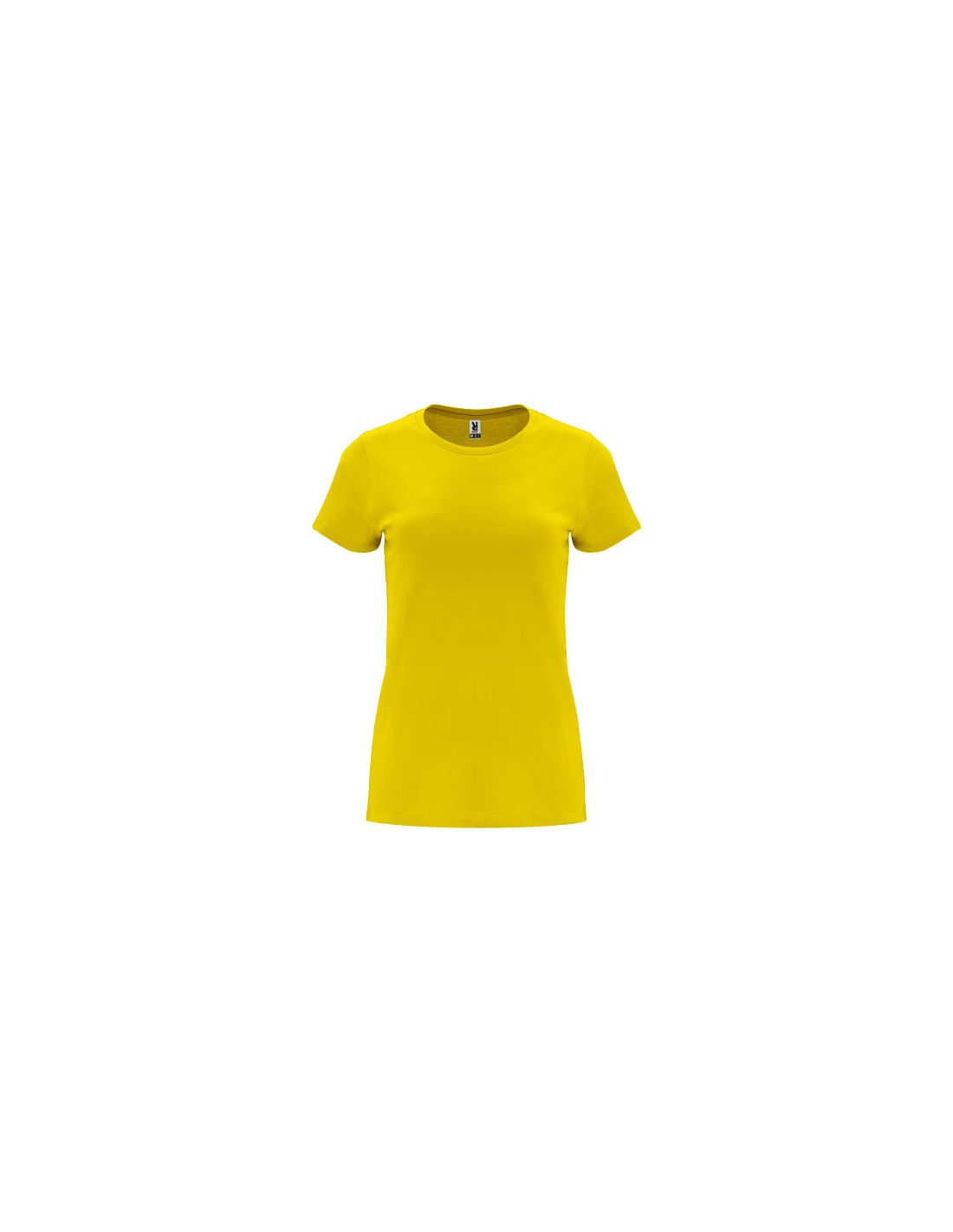 Camiseta de manga corta entallada para mujer. Cuello redondo en canalé 1x1 con cubrecosturas en el cuello. Etiqueta extraíble.