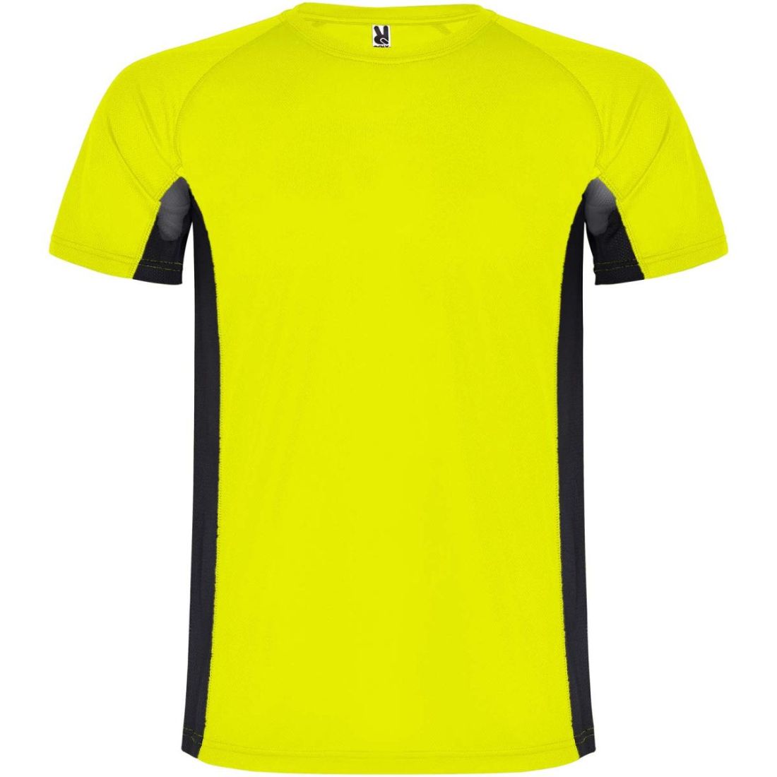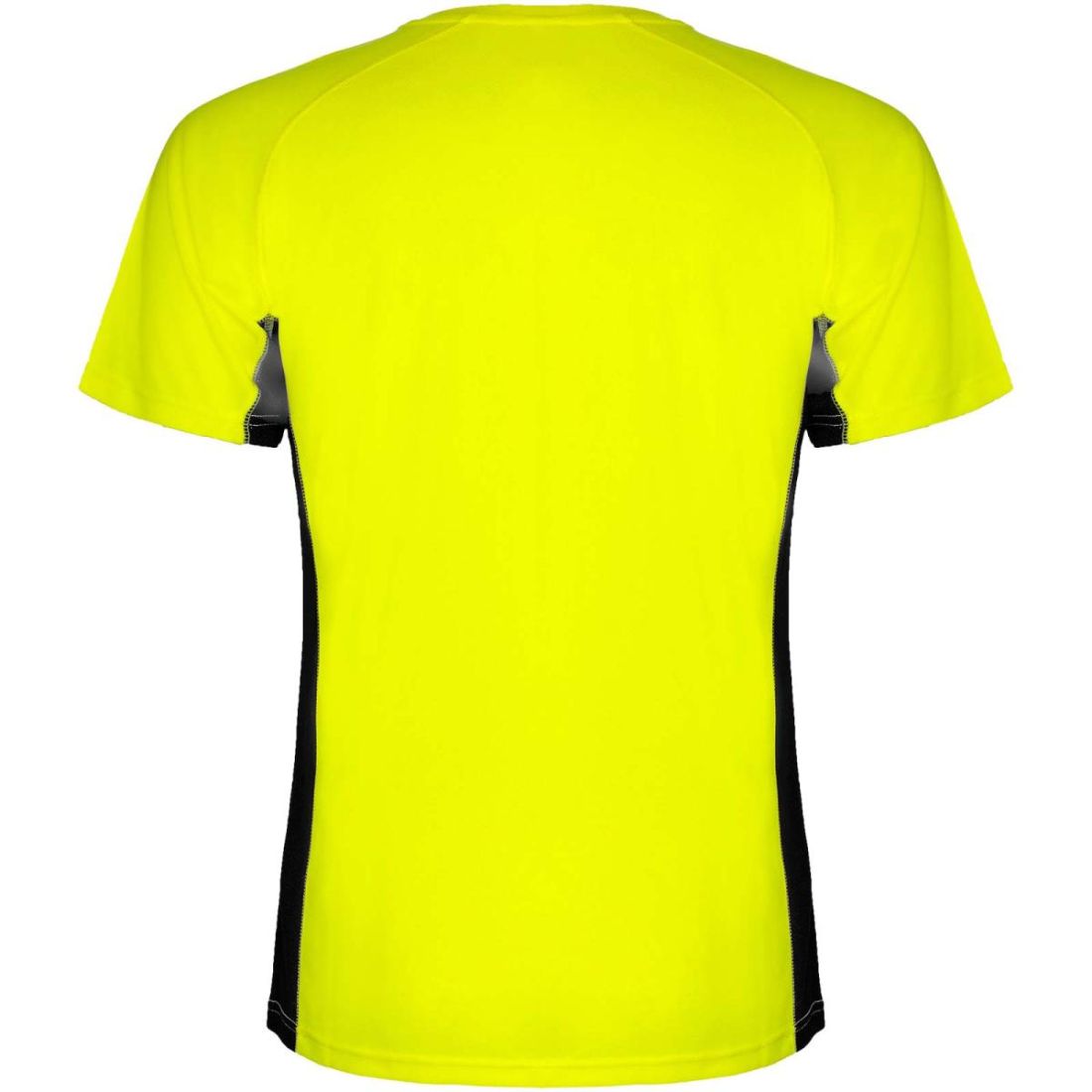 Tejido técnico y transpirable. Una combinación de dos tejidos de poliéster: tejido principal en ojo de perdiz, paneles laterales y manga interior en tejido microperforado. Cuello redondo con costuras interiores cubiertas y reforzadas. Etiqueta extraíble.