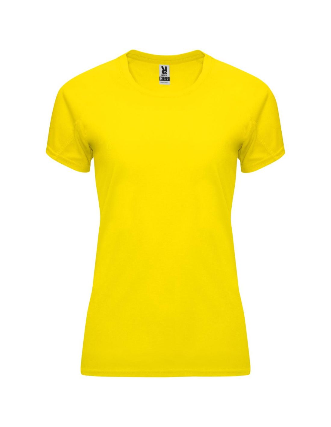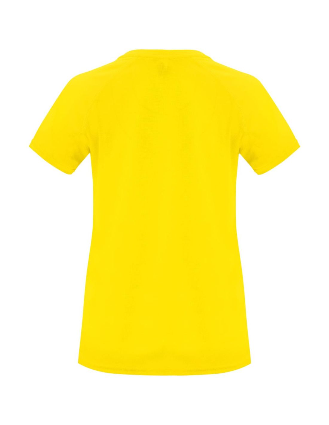 Camiseta técnica entallada de manga corta ranglán para mujer, con cuello redondo y cubrecosturas a juego. Paneles en mangas. Remallado a tono en sisa y panel de manga. Tejido CONTROL DRY. Etiqueta...