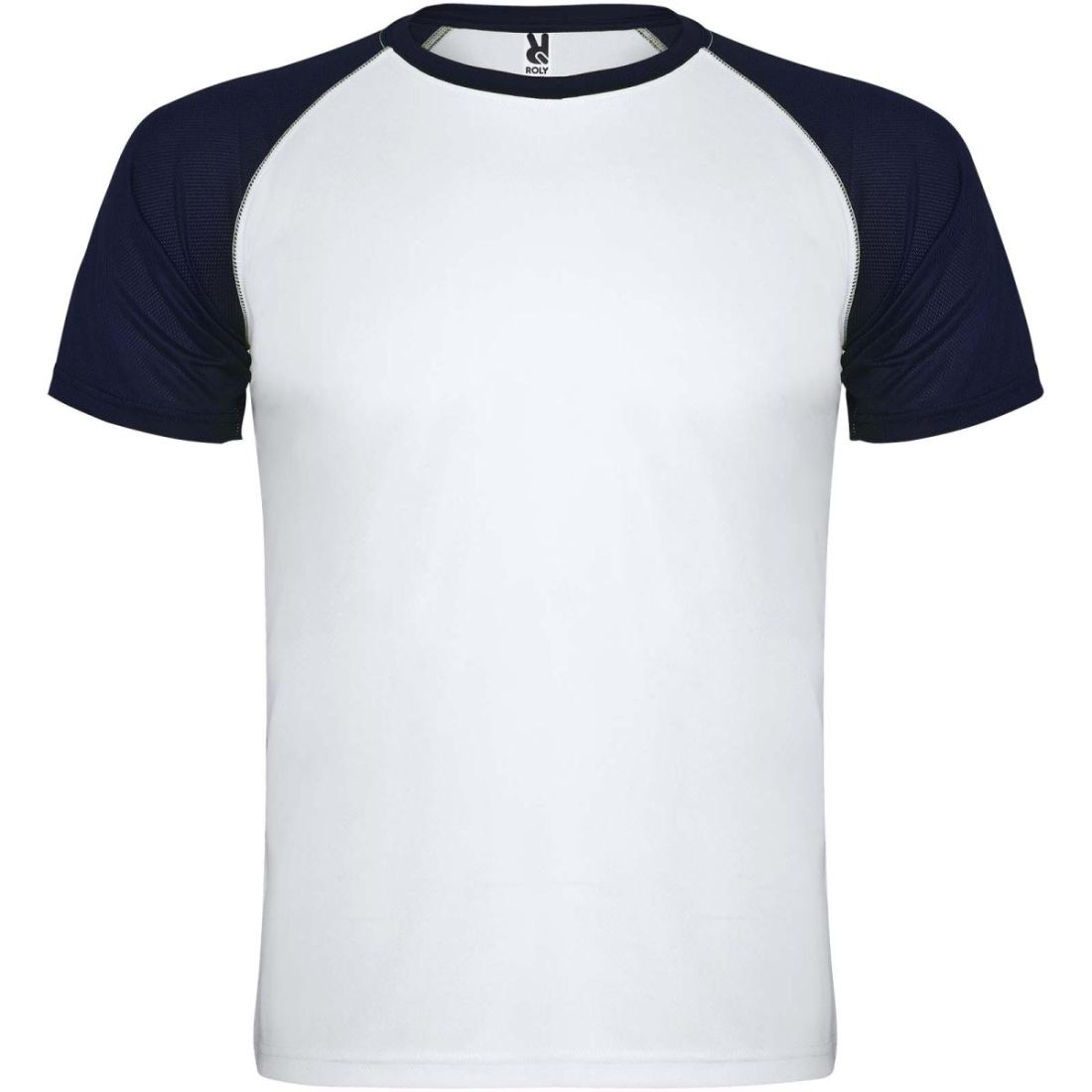 Tejido técnico y transpirable. Mangas raglán en contraste. Cuello redondo con costuras cubiertas reforzadas en contraste. Etiqueta extraíble.