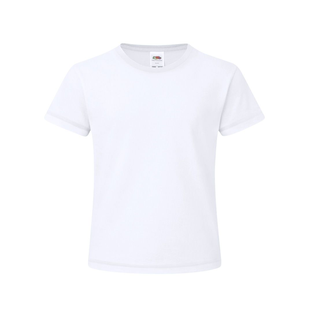 Camiseta para niño blanca Iconic de Fruit Of The Loom. Fabricada en material 100% algodón peinado Ring Spun de 140g/m2. De tacto suave y corte clásico, con cuello redondo estrecho de canalé 1x1 y tapeta a juego. Etiqueta fácilmente removible y disponible en tallas 3-4, 5-6, 7-8, 9-11, 12-13, 14-15.