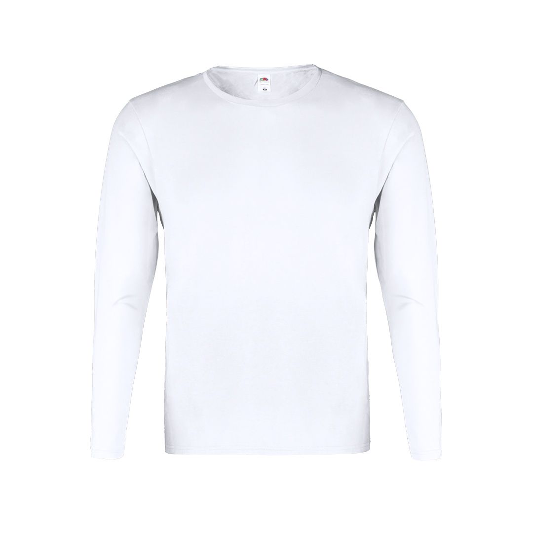 Camiseta adulto blanca Iconic Long Sleeve de Fruit Of The Loom. Manga larga, fabricada en material 100% algodón peinado Ring Spun de 140g/m2. De tacto suave y corte clásico, con cuello redondo estrecho de canalé 1x1 y tapeta a juego. Etiqueta fácilmente removible y disponible en tallas S, M, L, XL, XXL.