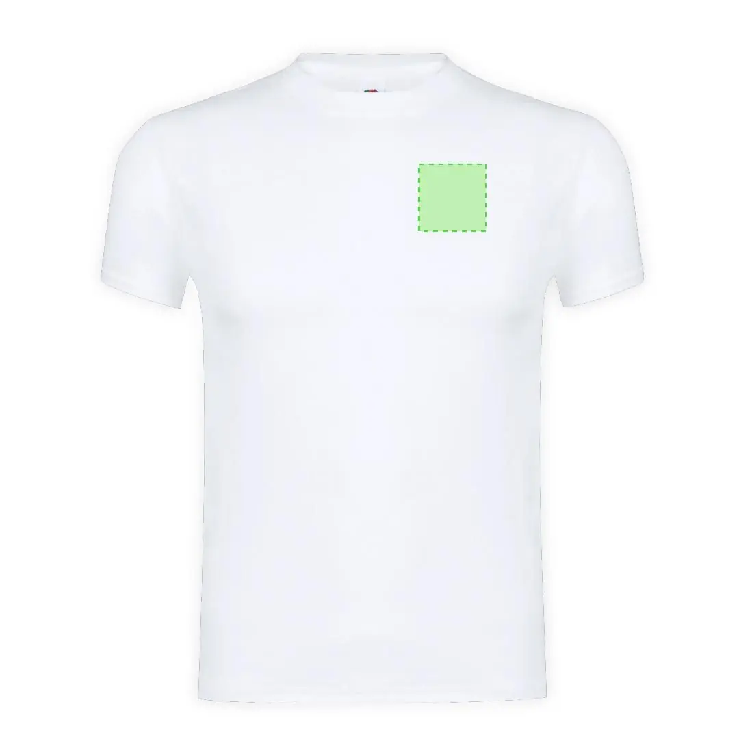 Camiseta para adulto blanca Original T de Fruit Of The Loom. Fabricada en material 100% algodón de 140g/m2. De tacto suave, con cuello redondo ribeteado y tapeta a juego. Con malla más cerrada para optimizar la calidad de impresión y disponible en tallas S, M, L, XL, XXL.