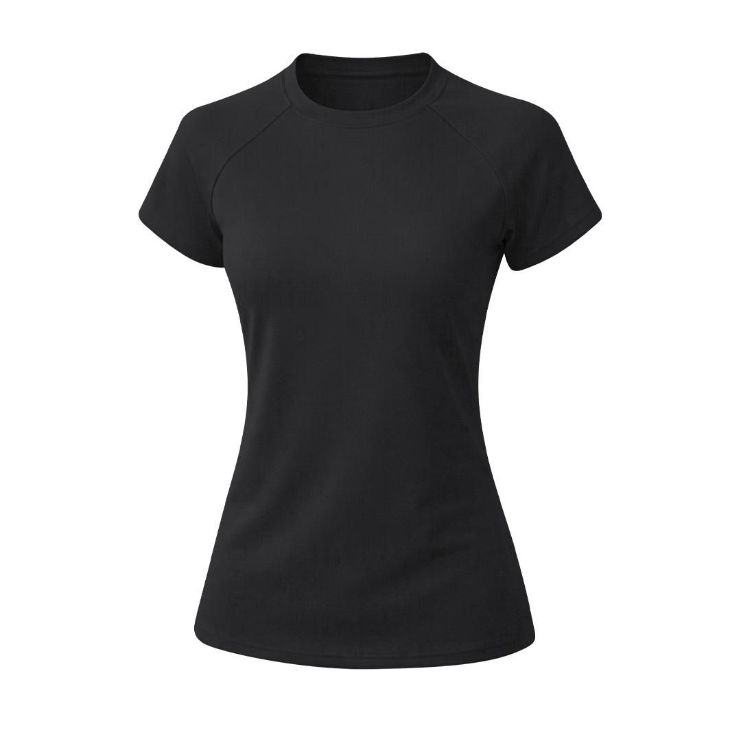 Camiseta técnica de manga corta ranglán, con fit femenino, confeccionada en tejido 100% poliéster waffle interlock , incorpora tecnología Cool Dry, que favorece la transpiración y el secado rápido. Diseño con mangas ranglán y costuras overlock en sisa y mangas. Cuello y cubrecosturas a tono.