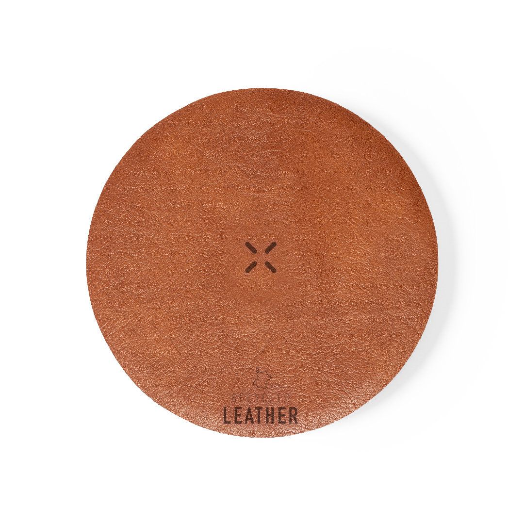 Cargador inalámbrico 15W, fabricado en combinación de RABS y cuero reciclado. Compatible con dispositivos equipados con tecnología de carga...
