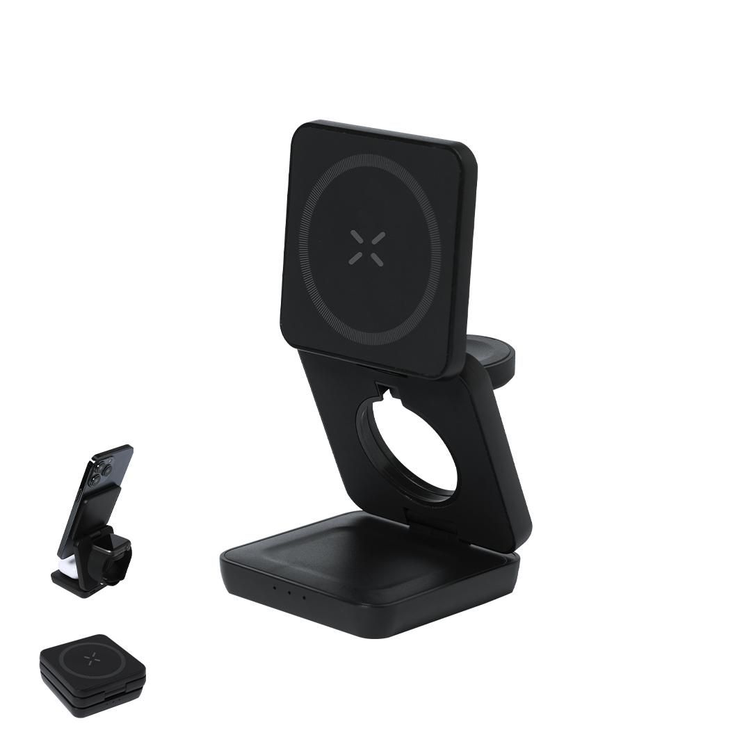 Cargador inalámbrico magnético 4 en 1 de 15W, fabricado en ABS reciclado (RABS). Diseñado para la carga simultánea del smartphone, auriculares, smartwatch y soporte. Un gadget todo en uno: plegable, portátil, de tamaño compacto, muy versátil y de diseño funcional. De acabado mate con tacto gomoso. Conexión por usb Tipo C -cable incluido-.El RABS es un plástico altamente reciclable de gran resistencia y con multitud de aplicaciones que lo convierten en una solución eco-friendly. Fabricado conforme a los estándares RoHS y en cumplimiento con los siguientes requisitos de seguridad:Sistema de protección contra sobrecalentamiento.Sistema de protección contra sobrecarga.Sistema de bloqueo para evitar cortocircuitos.