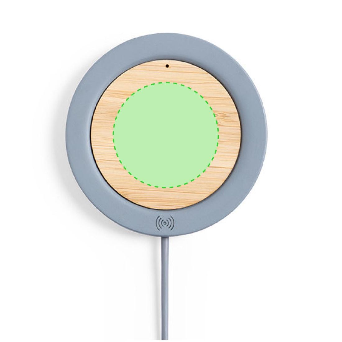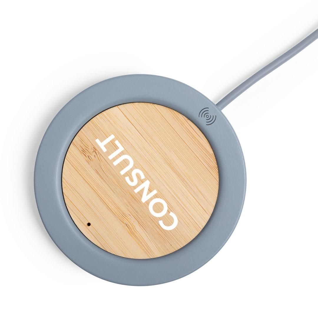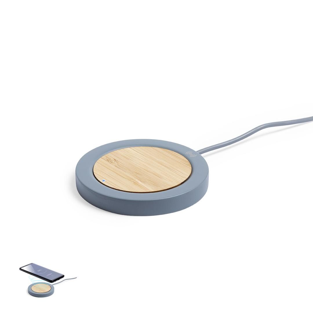 Cargador inalámbrico de diseño circular en combinación de piezas de bambú de corte nature y cemento de piedra caliza, un conglomerante formado por la mezcla de materiales naturales, principalmente piedra caliza molida y agua, obteniendo un material de gran consistencia y durabilidad. Indicador led, cable de carga USB a juego y compatible con dispositivos equipados con tecnología de carga inalámbrica. Protección de seguridad para evitar sobrecalentamiento, sobrecarga y cortocircuito. Presentado en atractiva caja de diseño.