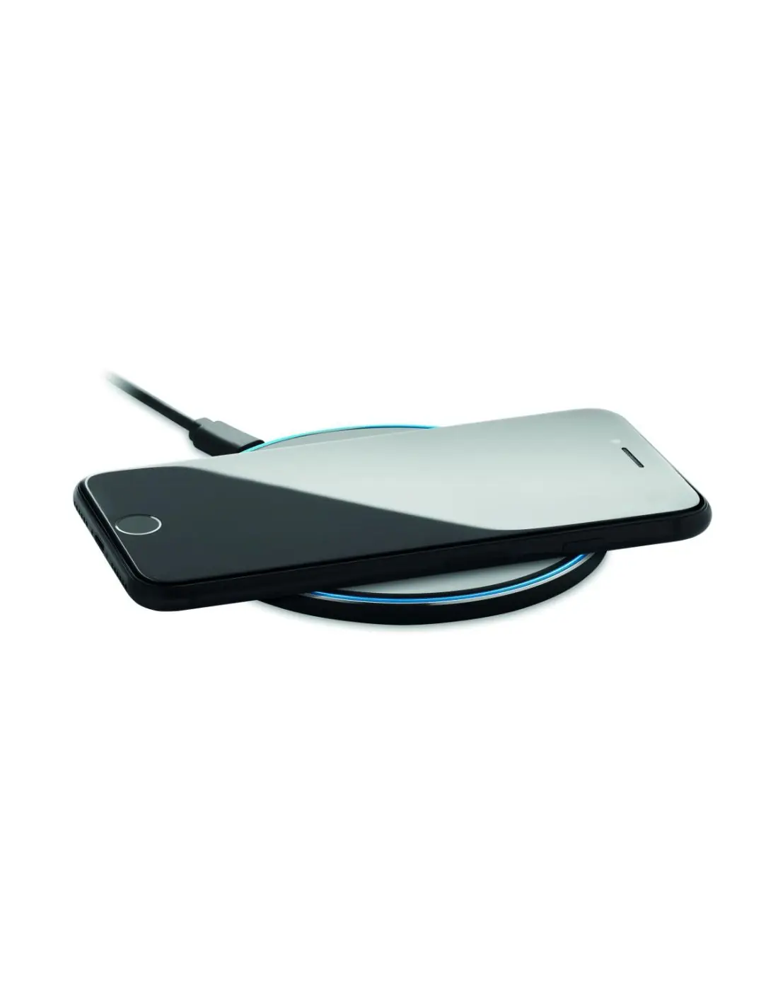 Base de carga inalámbrica de aluminio 10W con cristal en la parte superior. Indicador luz azul durante carga. Output: DC 9V/1.1A. Compatible con lo…