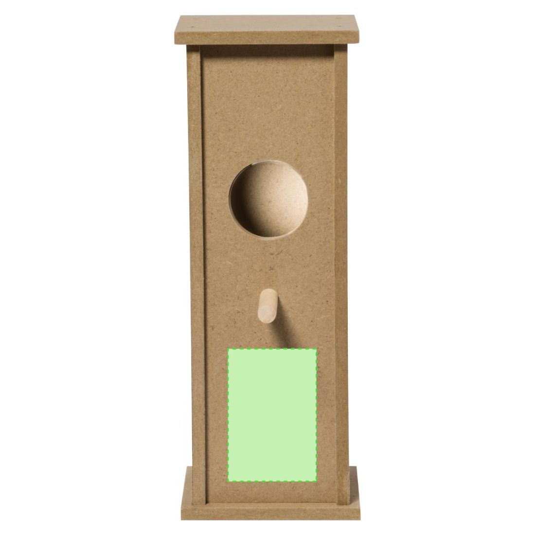 Caseta colgante para pájaros fabricada en resistente madera. Un acogedor refugio para aves muy fácil de montar, con amplio orificio de entrada para un cómodo acceso. Presentada en caja individual kraft.