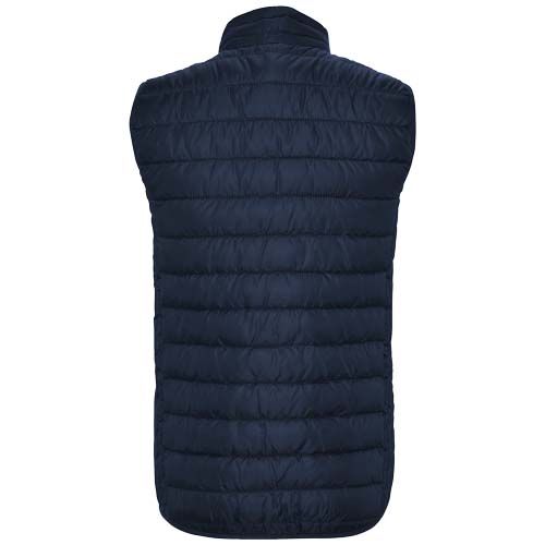 Chaleco infantil con relleno tacto pluma. Cremalleras invertidas con protector de barbilla y tirador a juego. Dos bolsillos laterales con cremallera. Ribete elástico en bajo y sisas. Forro interior en contraste. Prenda ligera y plegable. Resistente al agua. Modelo resistente al viento.