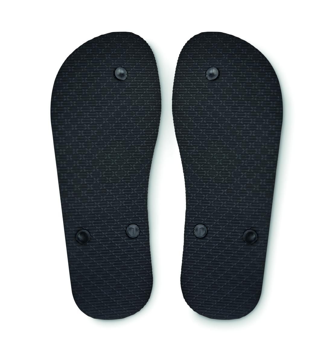 Chanclas de playa para sublimación con tiras en PVC. Suela de goma con capa superior de poliéster. Talla para 38-41. Este artículo únicamente puede pedirse marcado.