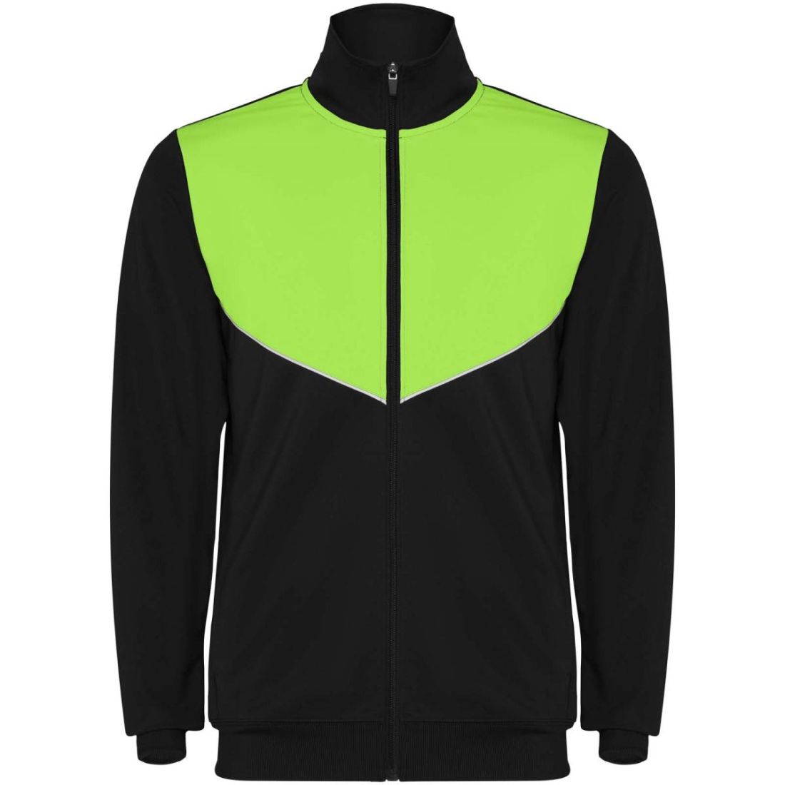 Chándal de tejido ligero y elástico. Chaqueta de color contrastado y ribetes de costura en el pecho. Cuello alto con costuras en contraste. Cremallera delantera central. Bolsillos laterales. Puños...