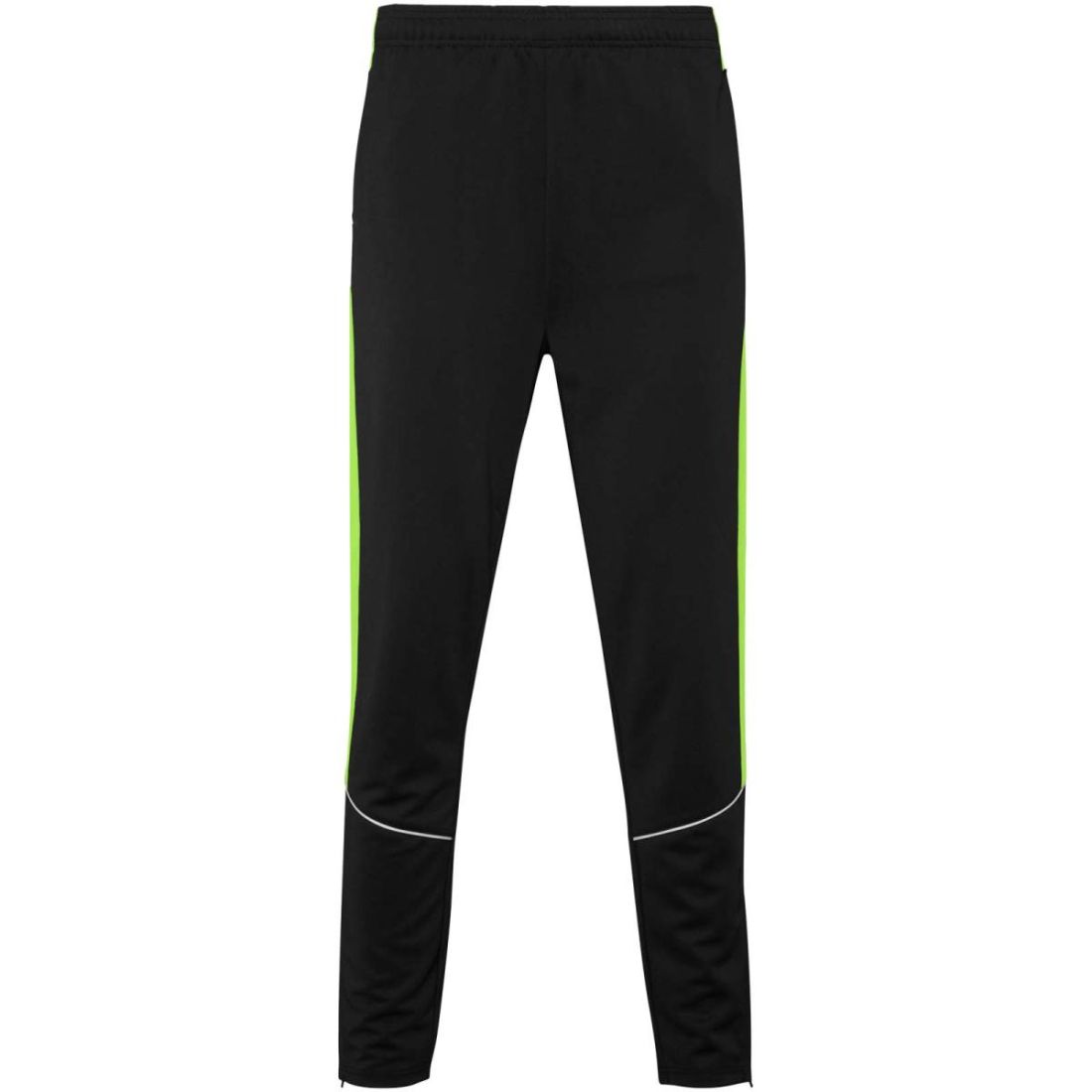Chándal de tejido ligero y elástico. Chaqueta de color contrastado y ribetes de costura en el pecho. Cuello alto con costuras en contraste. Cremallera delantera central. Bolsillos laterales. Puños y cintura de canalé 2 × 2. Pantalón con cintura elástica y cordón. Pieza lateral en contraste con ribete de costura. Dobladillo con cremallera.
