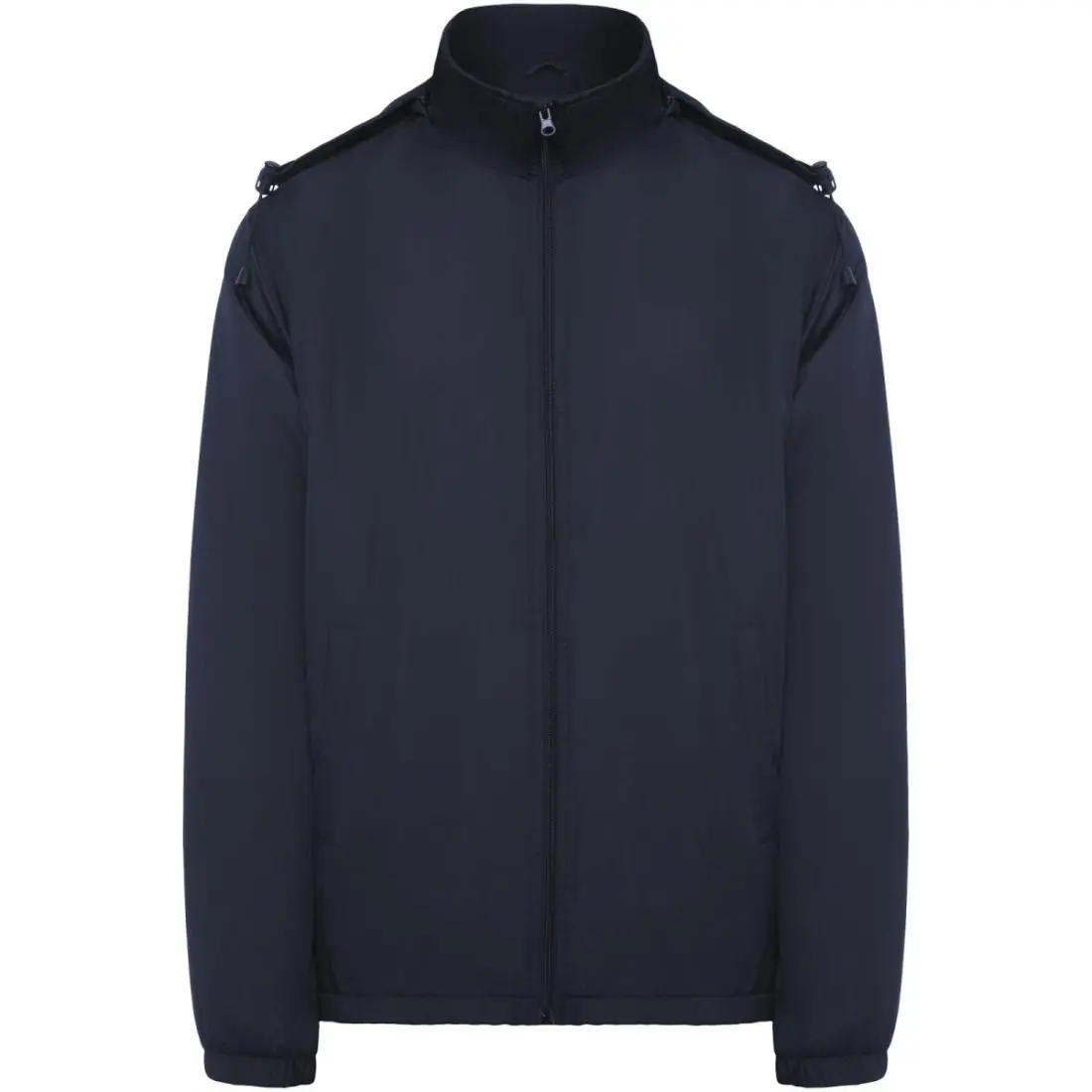 Chaqueta ligera repelente al agua. Cuello alto y capucha plegable con ajustadores. Forro interior micropolar. Cremallera frontal y protector de barbilla. Puños elásticos. Dos bolsillos laterales...