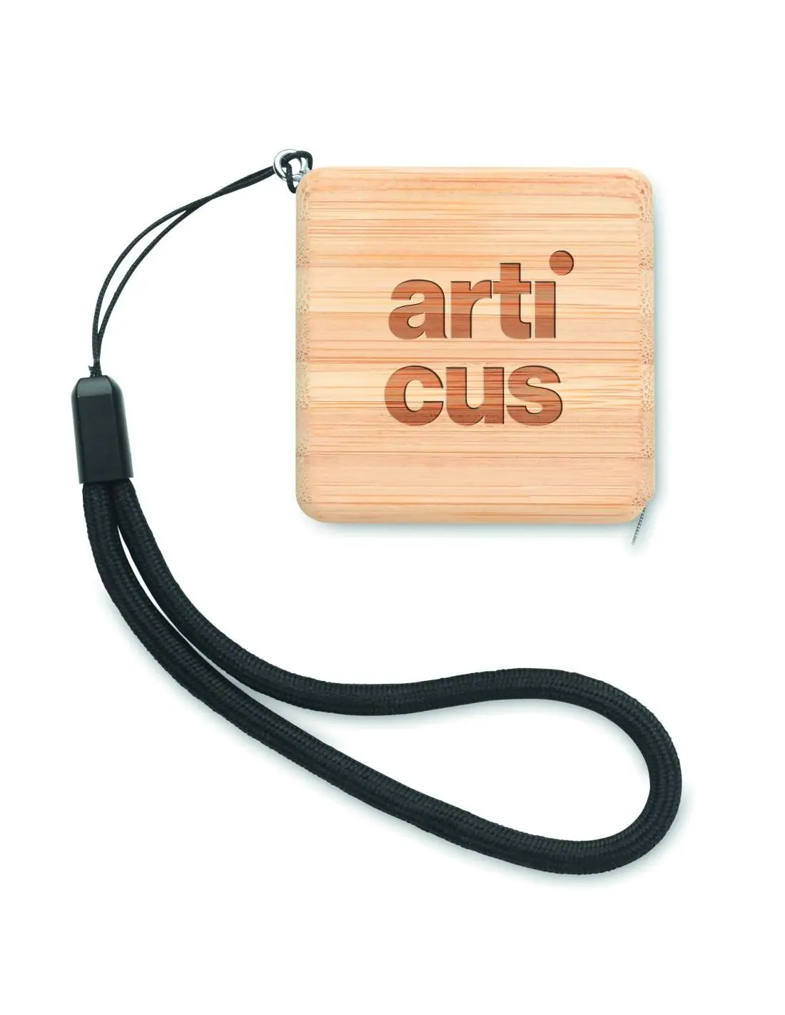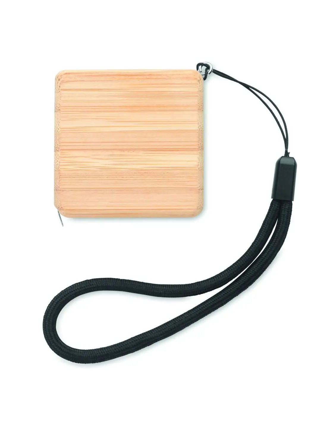 Cinta métrica cuadrada con carcasa de bambú de 1M con correa para la muñeca. Una herramienta útil para medir elementos con un toque natural gracias a la carcasa de bambú. El bambú es un material natural, el color del articulo, la medida y la impresión sobre el puede variar. FSC®-certified | FSC 100%, N5.7, FSC-C213206