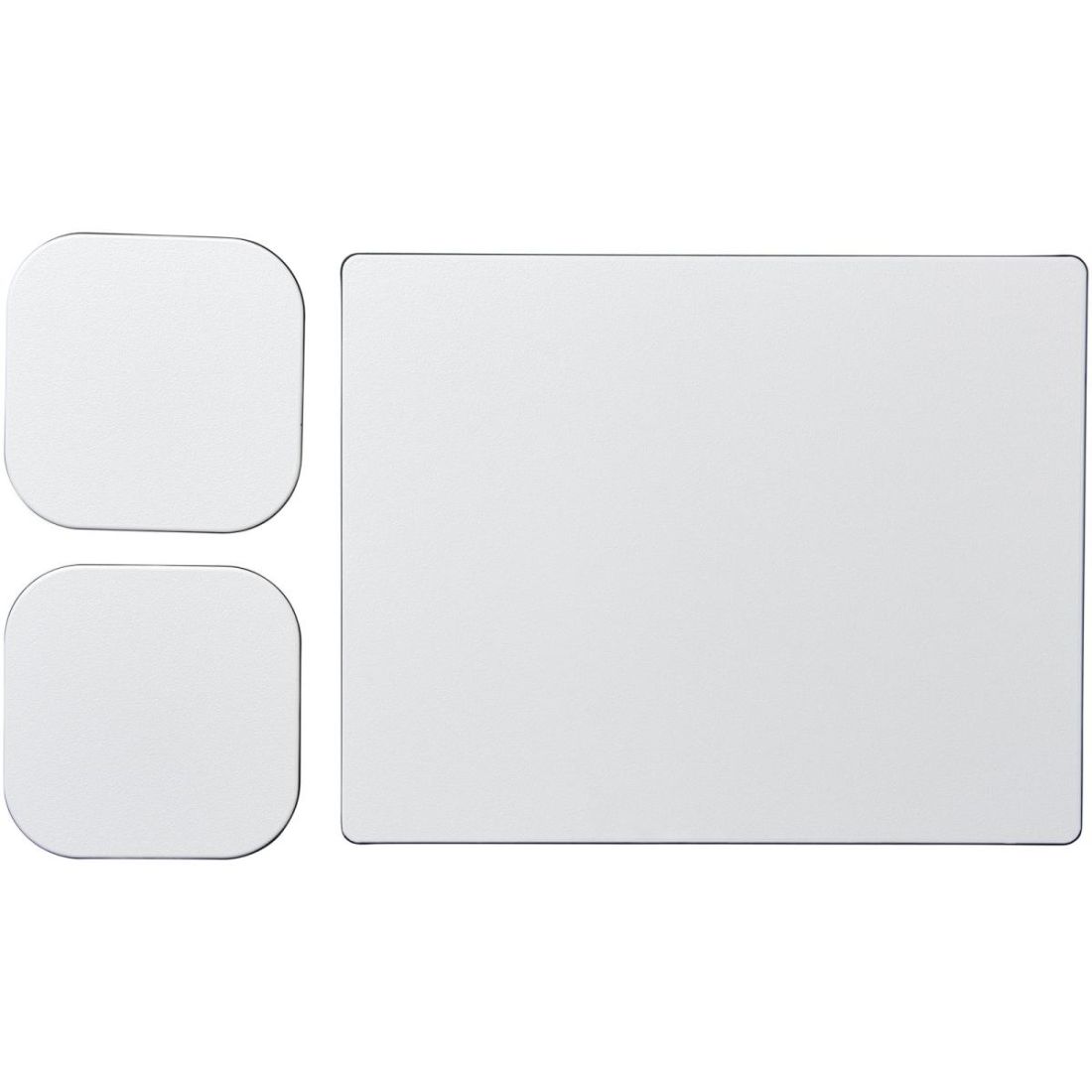 Se suministra con una alfombrilla de ratón Brite-Mat y un juego de posavasos a juego. El conjunto está compuesto por una alfombrilla para ratón rectangular (0,3 x 19 x 24 cm) y dos posavasos cuadrados (0,3 x 9,5 x 9,5 cm).