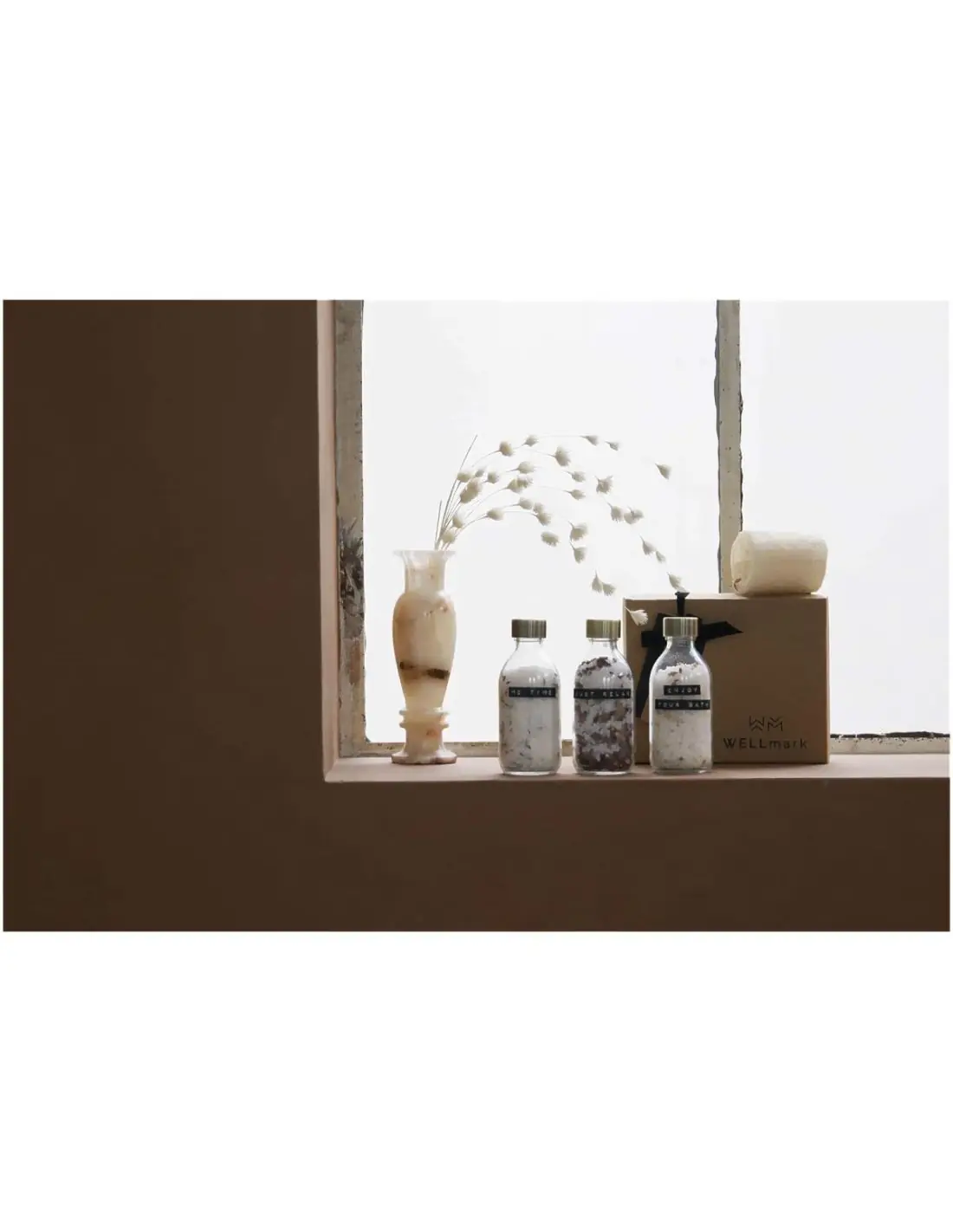 Set de regalo "Just Relax' con 3x 200 ml de sales de baño del Mar Muerto en un frasco de cristal transparente con tapón de acero en color cobre. Cada botella tiene un aroma diferente: Rosas, Lavanda y Manzanilla. ¿No tienes bañera en casa? Las sales de baño también pueden usarse para refrescar y relajar los pies cansados. El regalo perfecto para cualquier ocasión a un precio asequible. Fabricado en los Países Bajos.