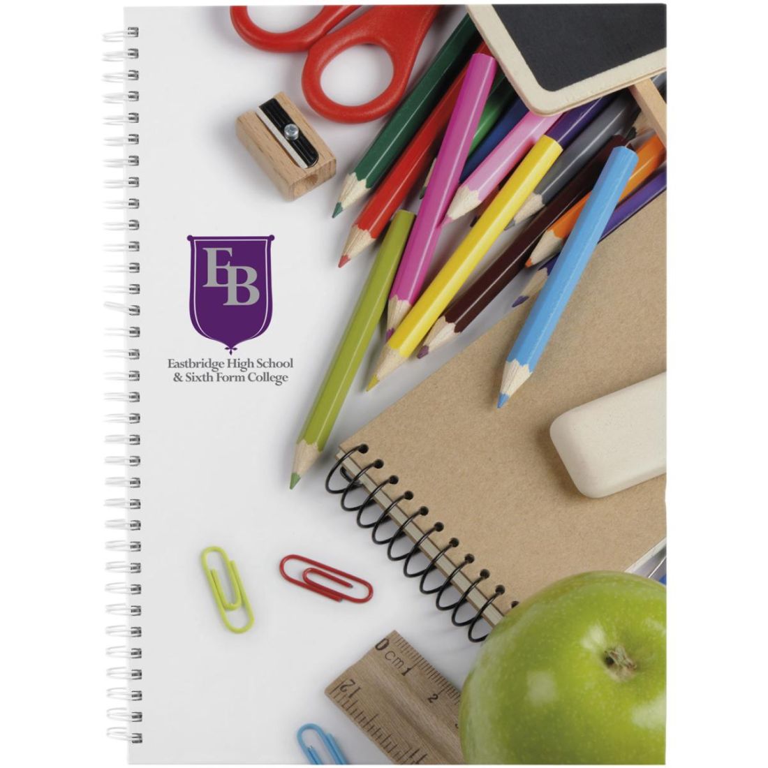 Incluye 80 hojas (80 g/m²) de papel en blanco y un alambre negro o blanco. Disponible en 3 tamaños: A4, A5 y A6. Decoración a todo color disponible en la tapa y en cada hoja, por el anverso y el reverso.