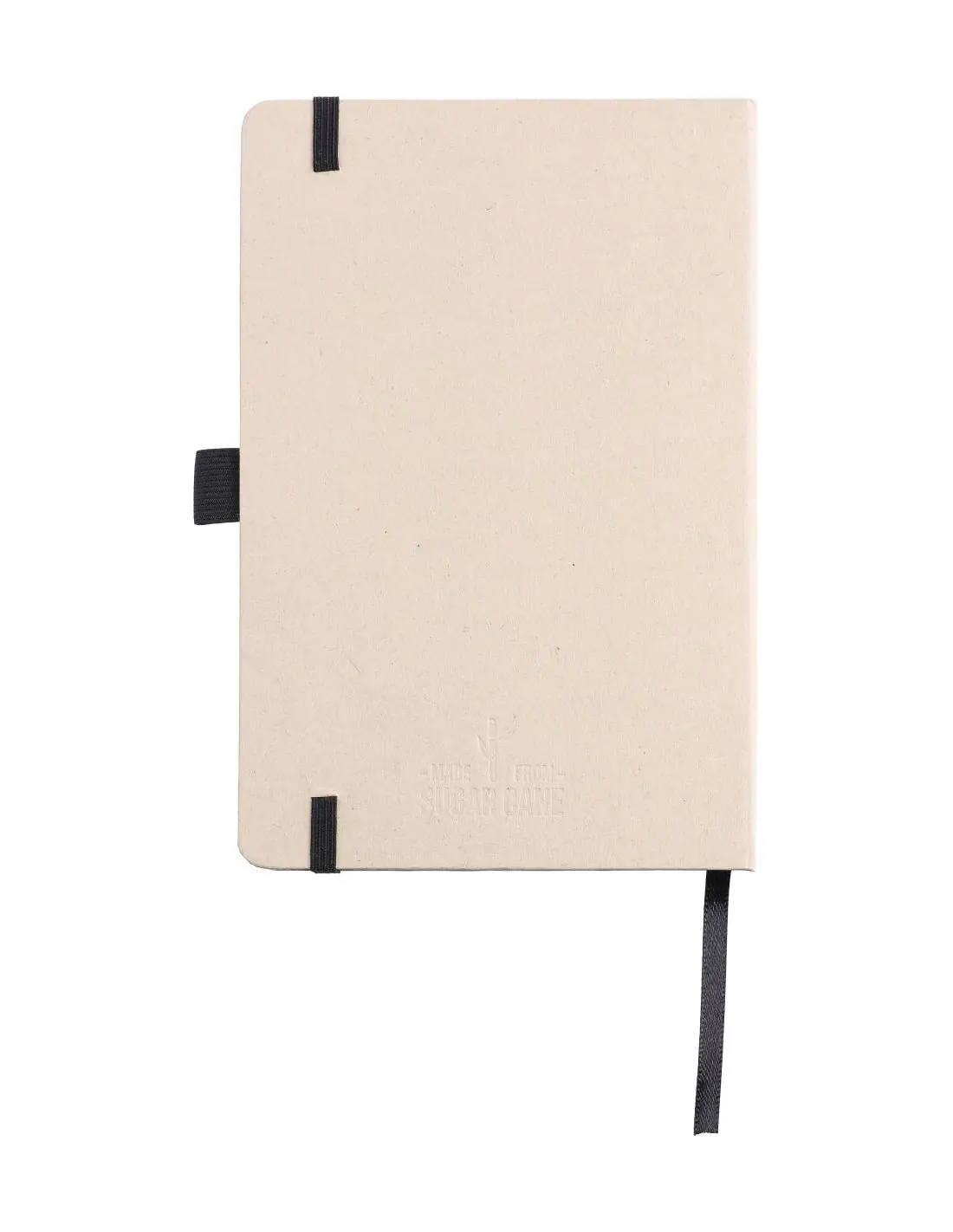 Libreta de caña de azúcar (aprox. A5) con 80 páginas rayadas (80 g/m2) de caña de azúcar. Con banda elástica, presilla para bolígrafo y cinta marcadora. Logotipo de caña de azúcar en relieve en la parte posterior.