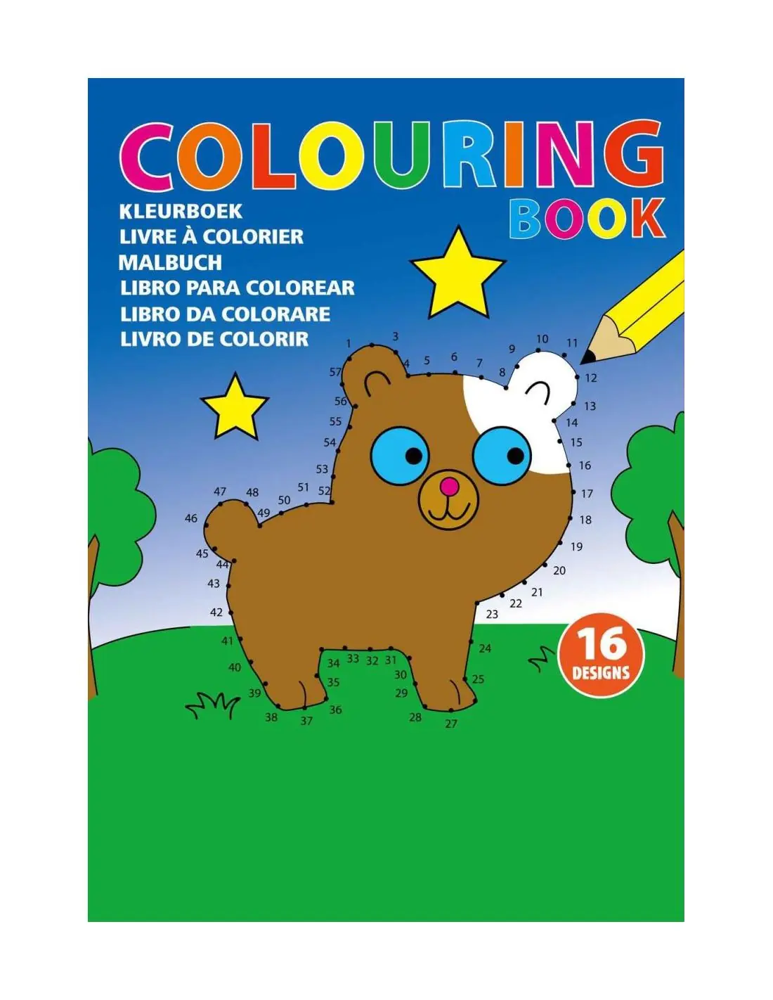 Libro infantil de cartón para colorear, en formato A5 y con 16 diseños en 8 páginas. ¡Advertencia! No apto para niños menores de 3 años. Las piezas pequeñas pueden soltarse, tragarse y representar un peligro de asfixia.