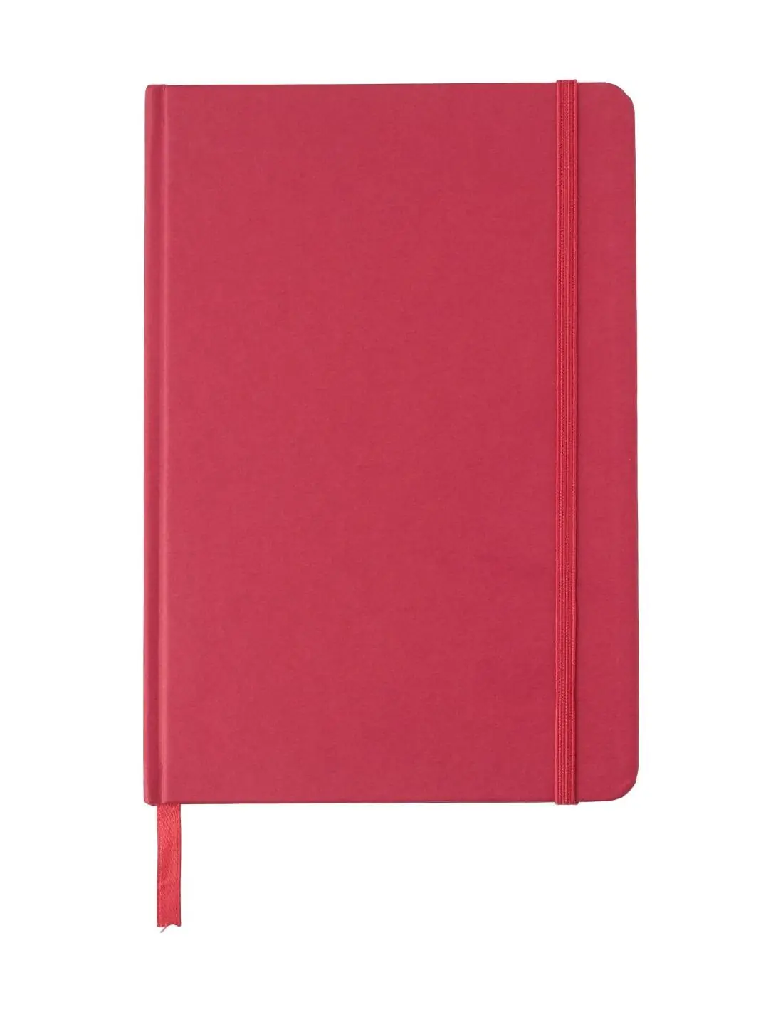 Libreta de cartón reciclado (aprox. A5) con 160 páginas a rayas. Con elástico y cinta marcapáginas a juego.