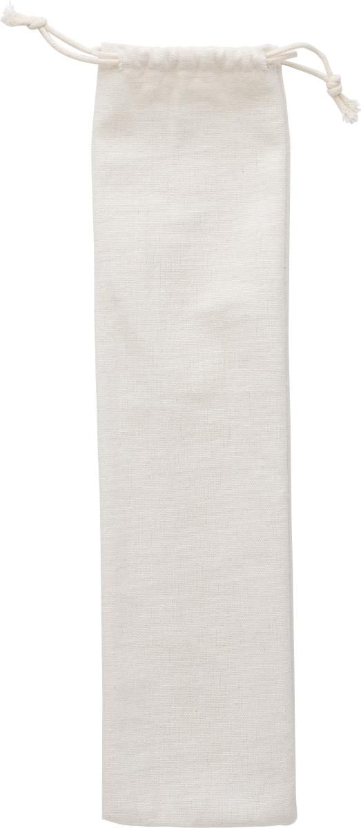 Cubiertos de bambú para ensaladas. Los cubiertos tienen agujeros en el extremo del mango. Presentados en una bolsa de algodón con cierre de cordón.