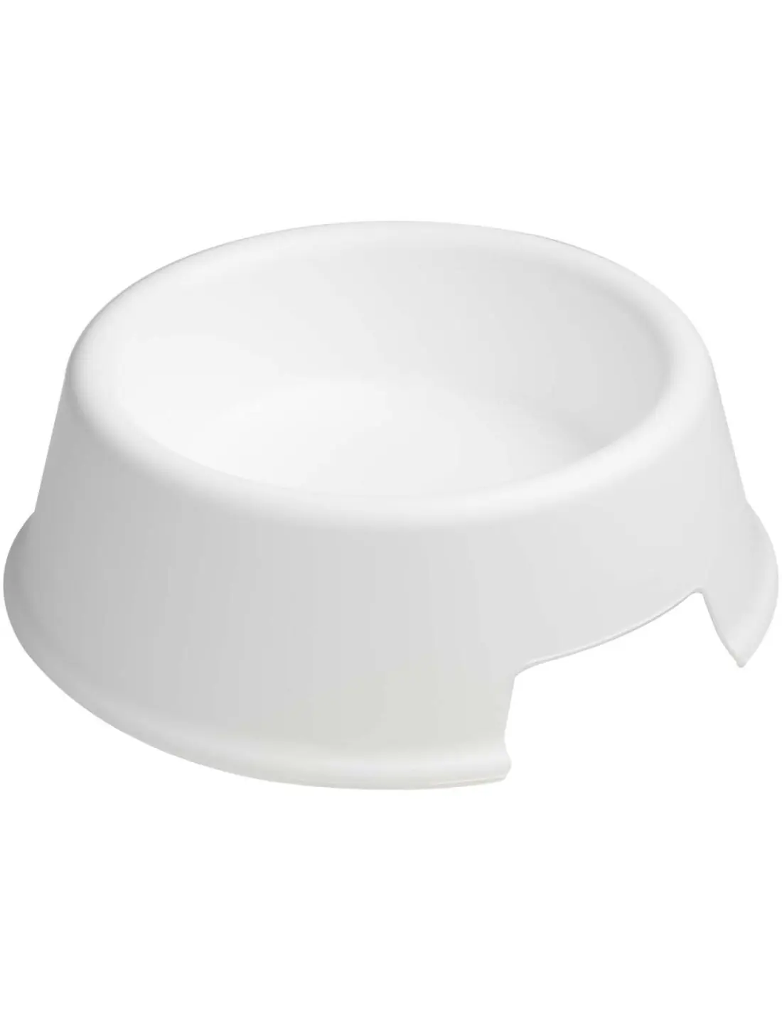 Cuenco de plástico con patas de caucho para perros. Capacidad de 450 ml. El cuenco principal es totalmente reciclable.
