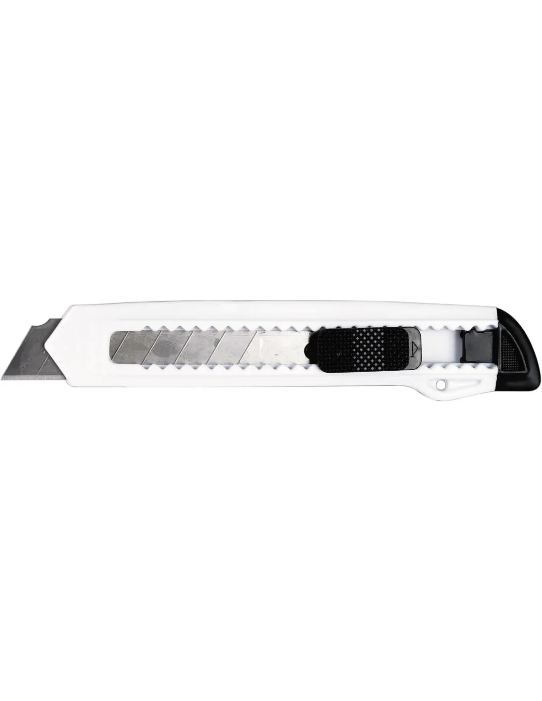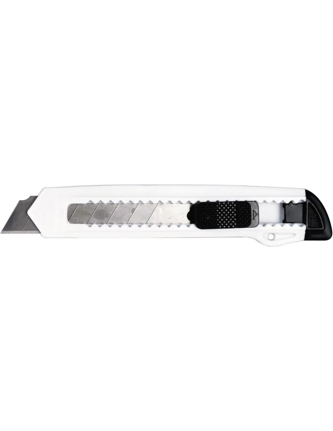 Cúter de plástico con mecanismo de seguridad.