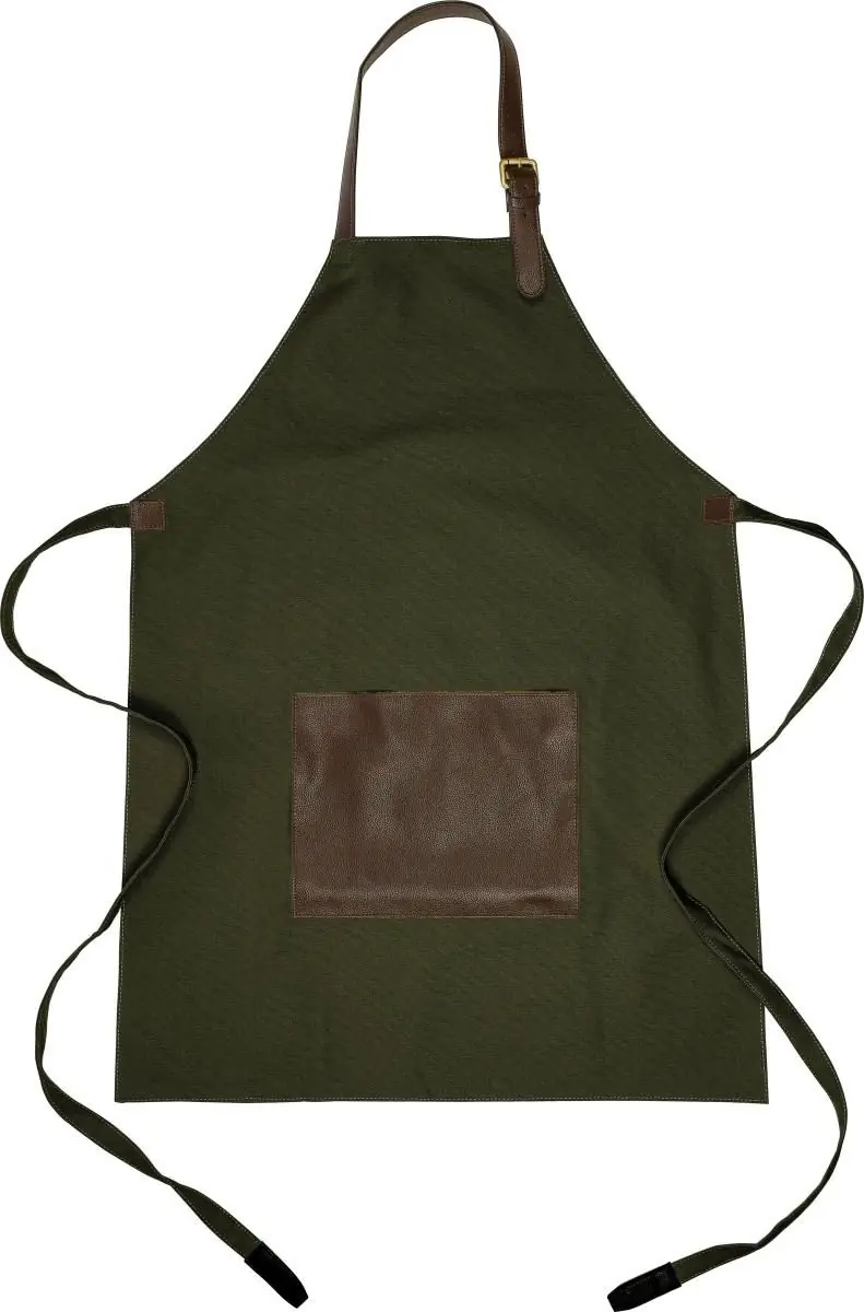 Delantal de lona (450 g/m2) con bolsillo delantero de PU rPET y correa ajustable para el cuello. Repelente al agua.