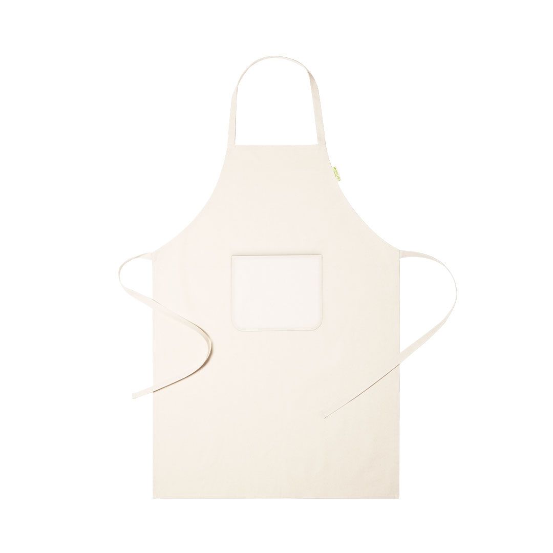 Delantal de línea nature, elaborado en material 100% algodón orgánico. Con bolsillo frontal y cintas de ajuste, de corte por debajo de la rodilla. Distintivo algodón orgánico en etiqueta.