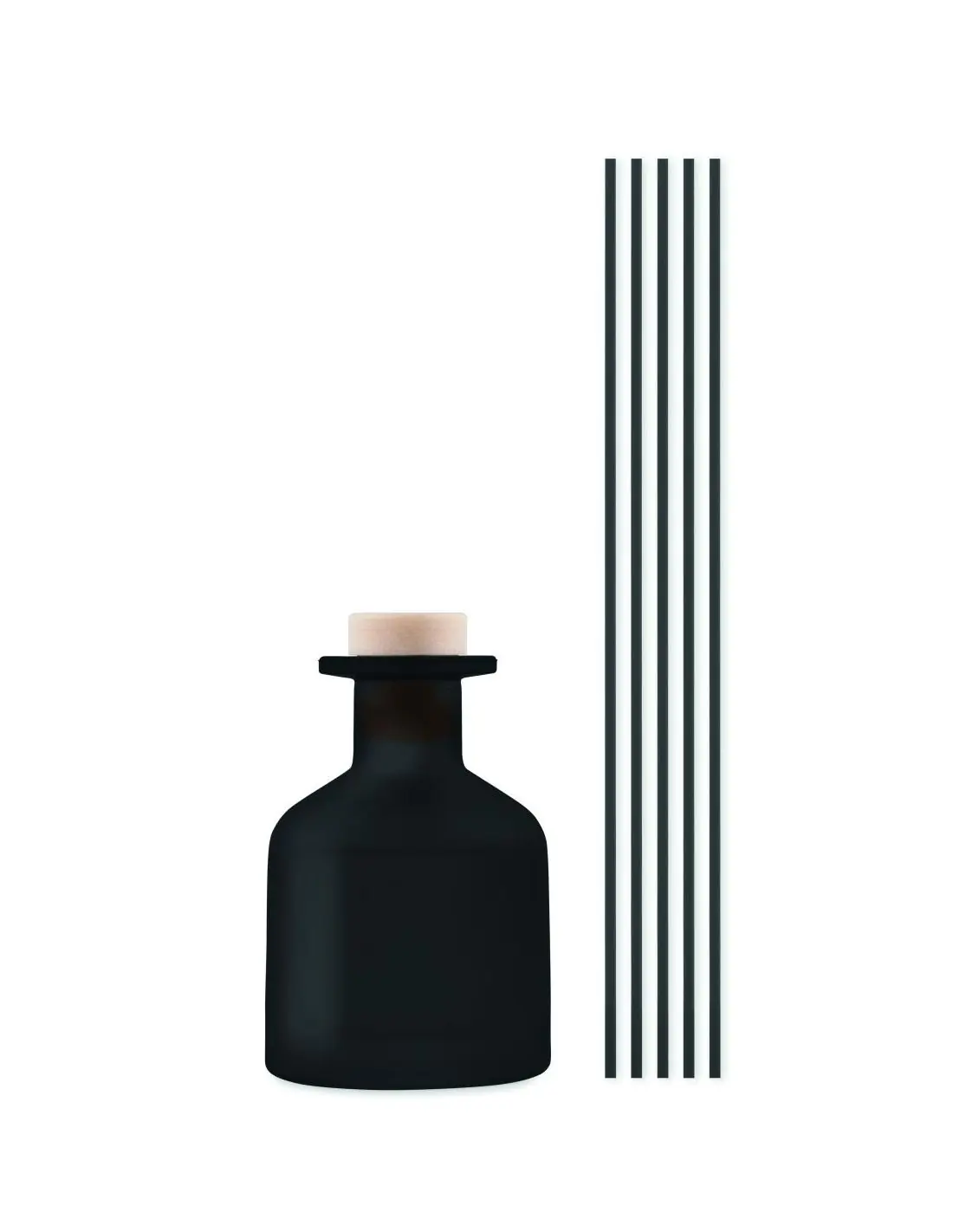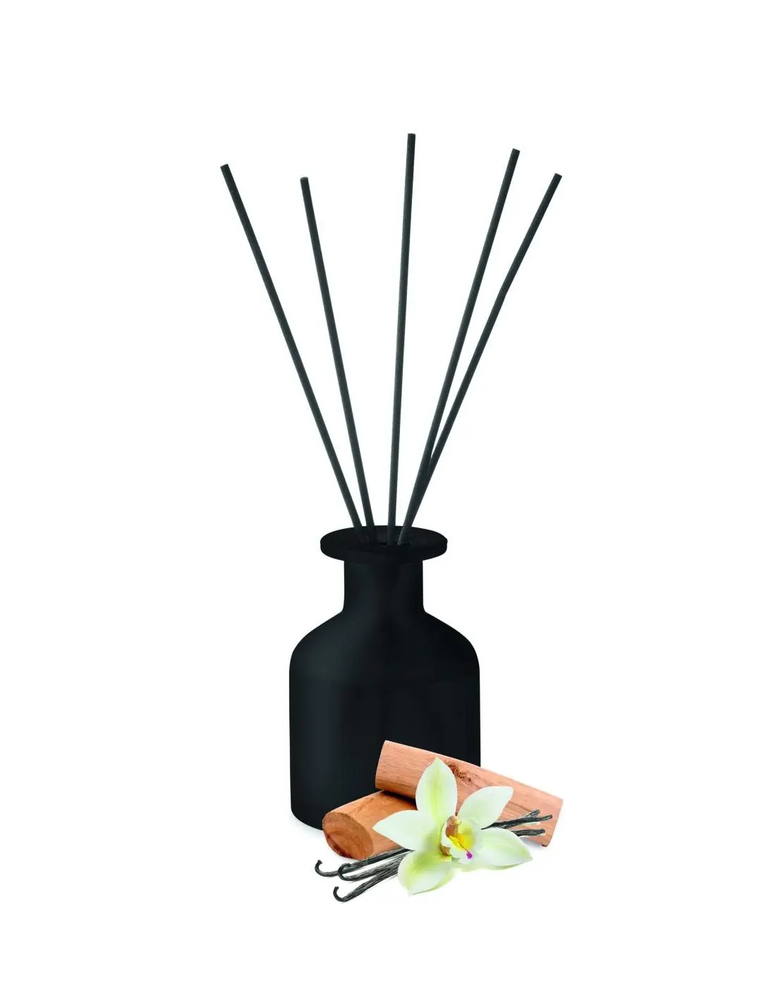 Difusor aroma para el hogar. Incluye aceite perfumado de 100 ml en botella de vidrio opaco y 8 varillas. Fragancia: vainilla y sándalo