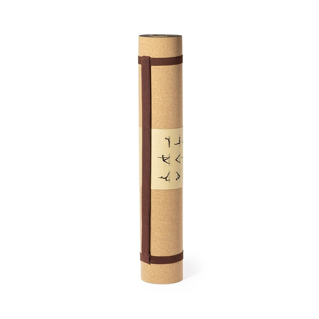 Esterilla de línea nature para la práctica del yoga y otras actividades. Fabricada en resistente corcho natural, con base antideslizante en TPE. Tamaño 60x180 cm, con asa de transporte y presentada en atractiva funda individual de diseño eco, con ilustraciones de ejercicios.