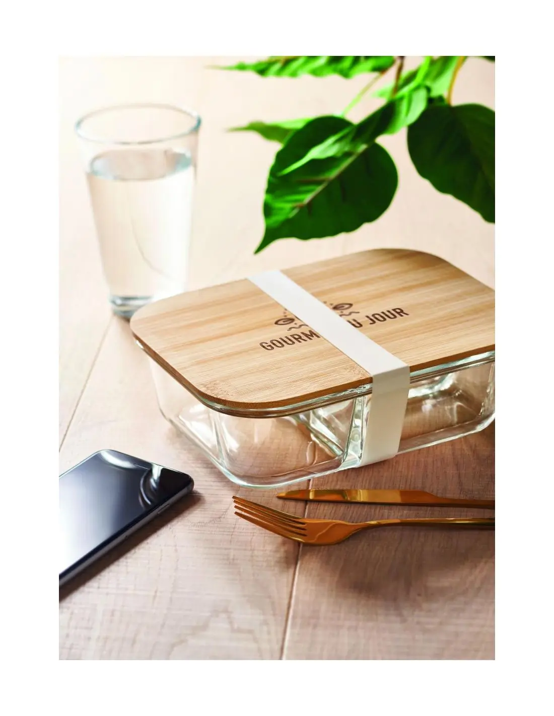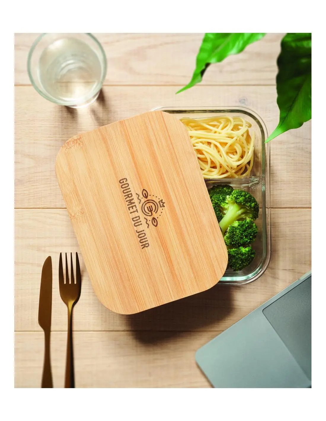 Fiambrera vidrio tapa de bambú Ecológica Personalizada 7MO6973