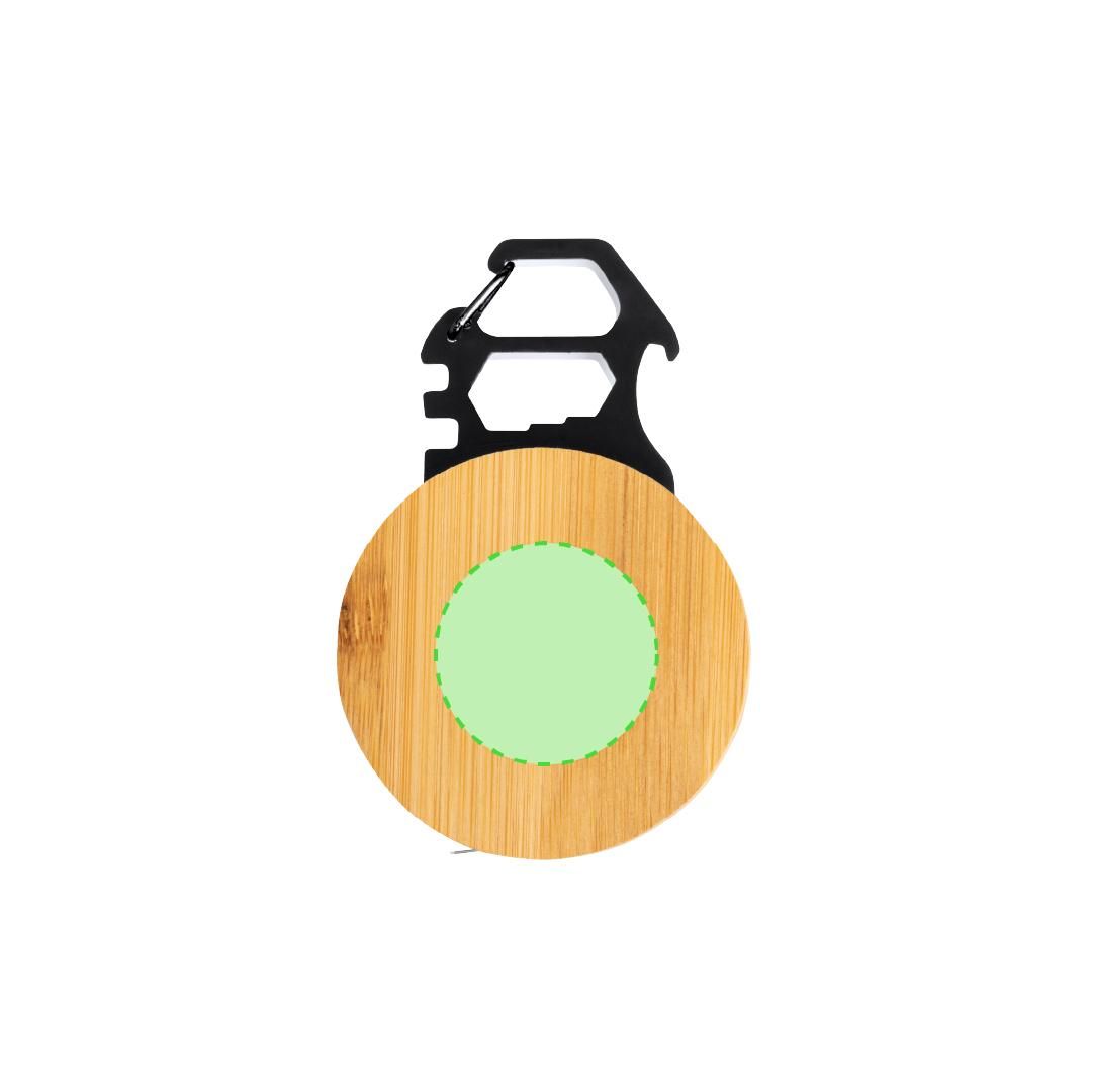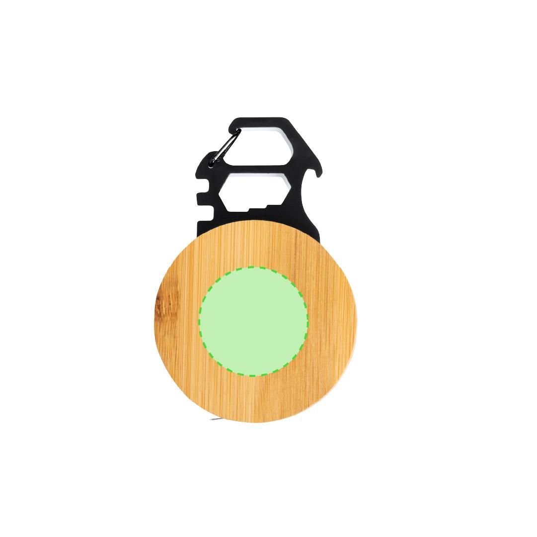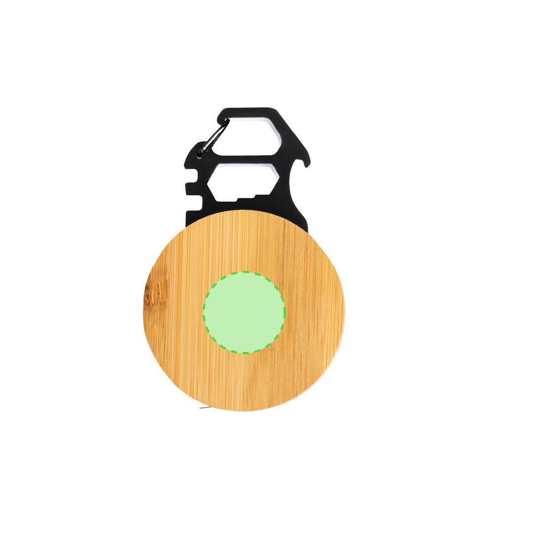 Multiherramienta con 7 funciones, fabricada en acero inox y bambú. Incluye un metro con medidas en centí metros y pulgadas (longitud de 1 metro), una llave para tuercas hexagonales en varios tamaños y un abridor. Además, cuenta con un mosquetón para facilitar el transporte. Presentada en caja de diseño kraft.Materiales como el bambú fomentan la utilización de materias primas naturales, reduciendo las emisiones contaminantes. Proviene de una planta de gran resistencia y versatilidad, con crecimiento y regeneración rápidos, siendo una excelente alternativa al uso de madera tradicional.