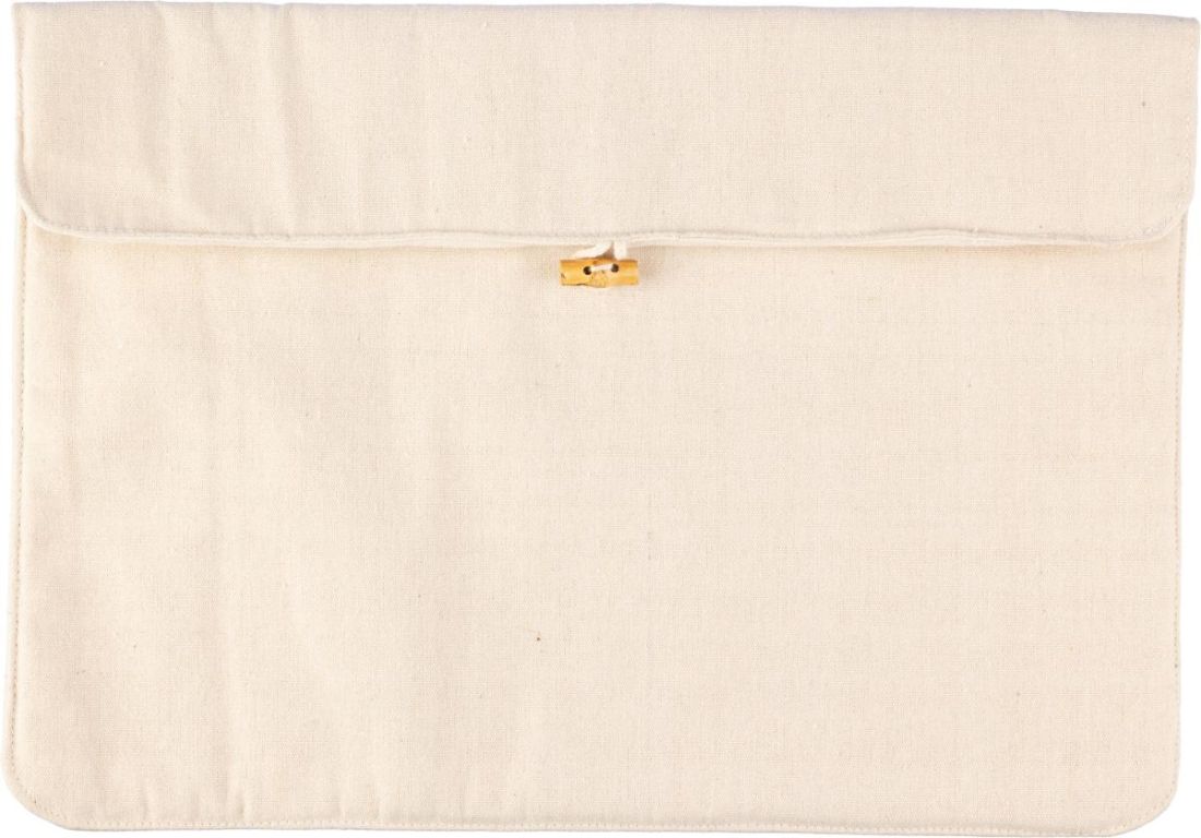 Funda de algodón (220 g/m²) para un portátil (15’’) con forro de algodón (120 g/m²) y cierre de bambú y tela.