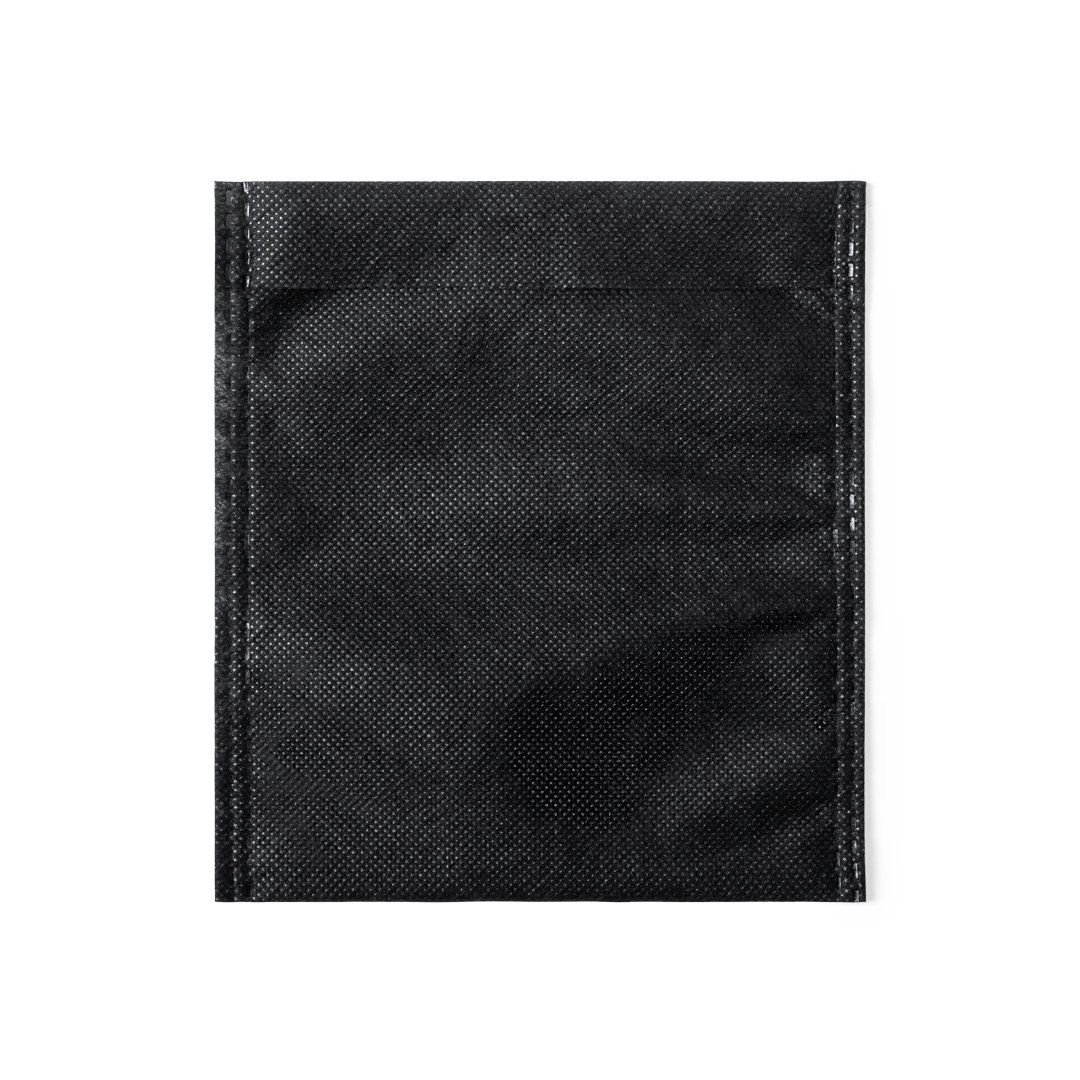 Funda multiusos fabricada en tejido non-women de color negro y acabado termosellado, transpirable y lavable. De tamaño compacto e ideal para impresión.