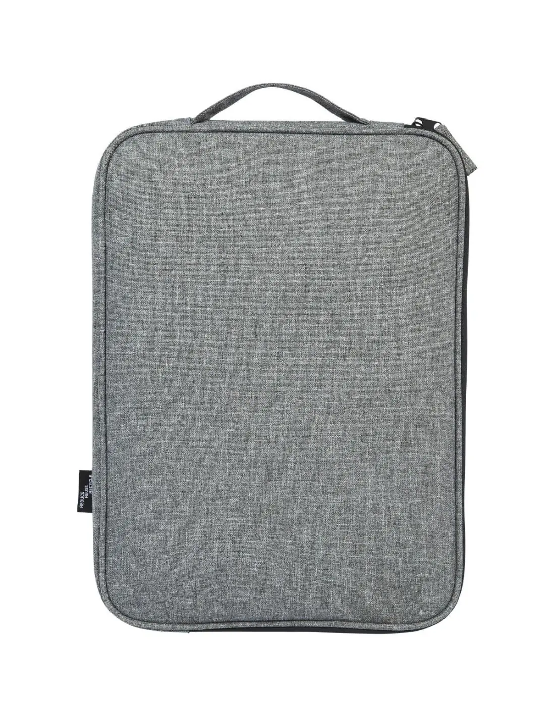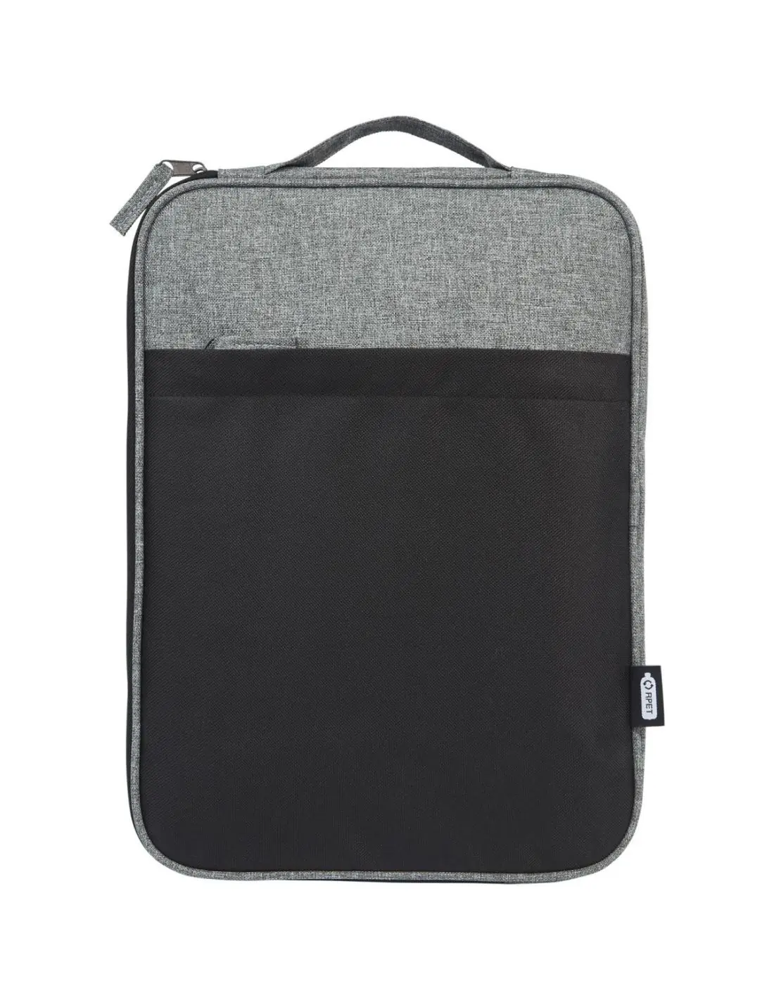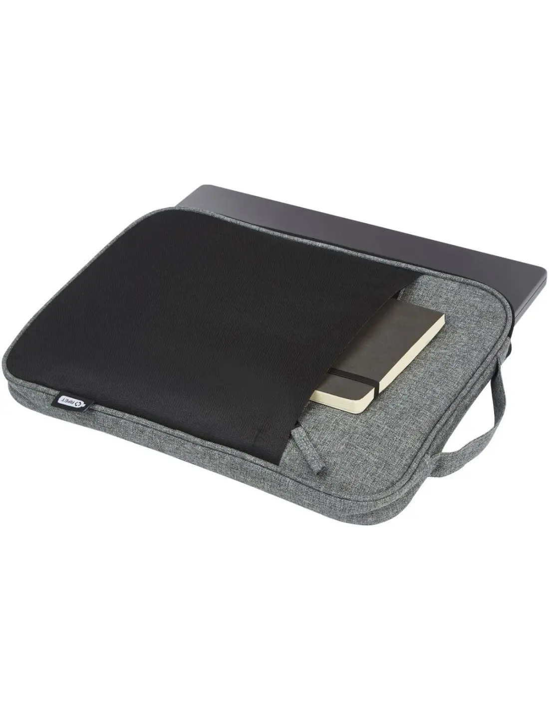 La funda para portátil en dos tonos está hecha de materiales 100 % reciclados GRS en el exterior y cuenta con un compartimento para portátiles compacto y seguro que se adapta a la mayoría de los portátiles de 14 pulgadas. También tiene un bolsillo delantero con cremallera para documentos, cuadernos y pequeños accesorios y un asa de transporte, por lo que es perfecta para desplazamientos diarios.