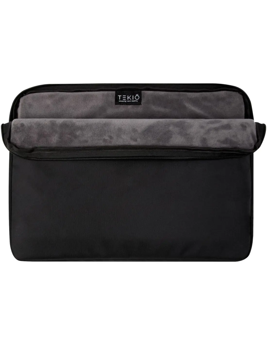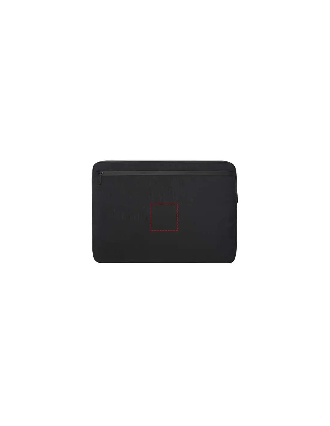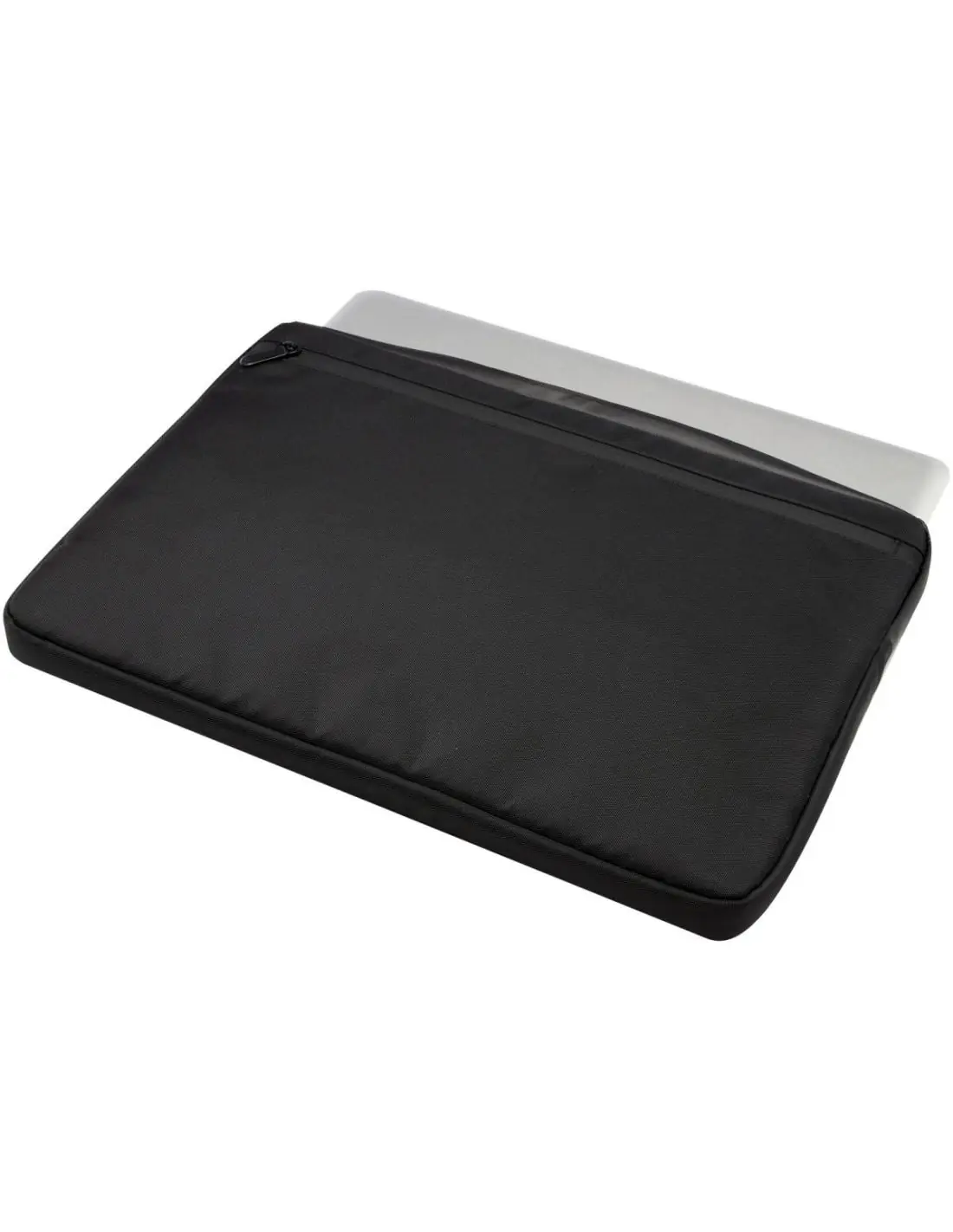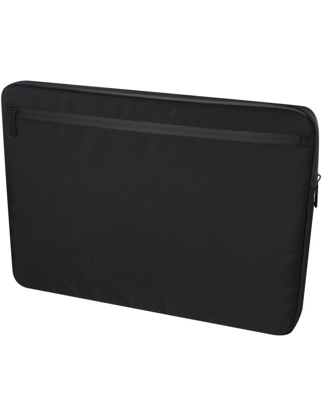 La funda para portátil de 15,6" está hecha de poliéster reciclado 900D GRS en el exterior y un suave forro interior de terciopelo reciclado GRS para la máxima protección. La parte posterior de la funda tiene un compartimento con cremallera para guardar cualquier artículo de dimensiones reducidas, como cuadernos, documentos u otros pequeños accesorios.