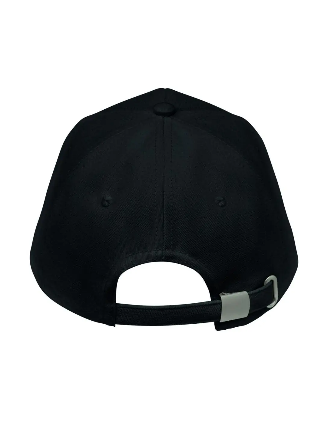 Gorra de béisbol de 5 paneles de algodón orgánico cepillado de 250 gr/m² con cierre ajustable con hebilla.