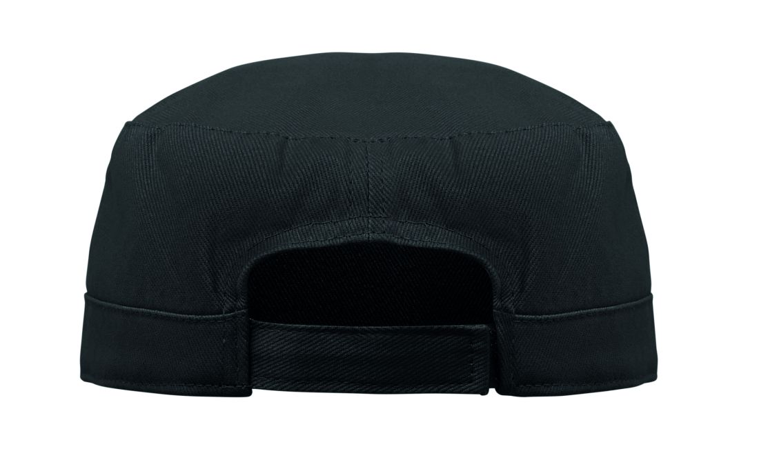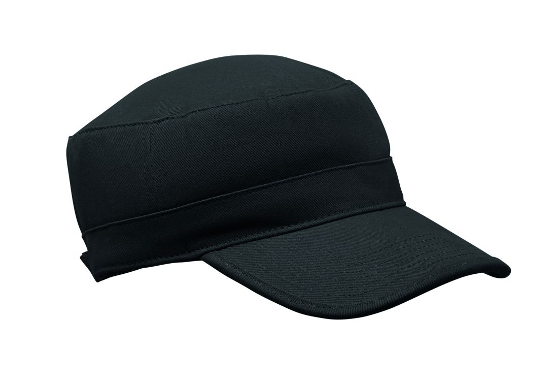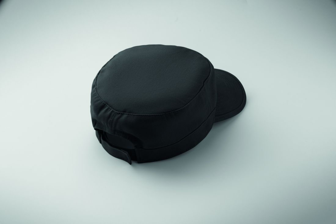 Gorra militar de algodón cepillado de 260gr/m² con banda de sudoración de poliéster y cierre ajustable de velcro.