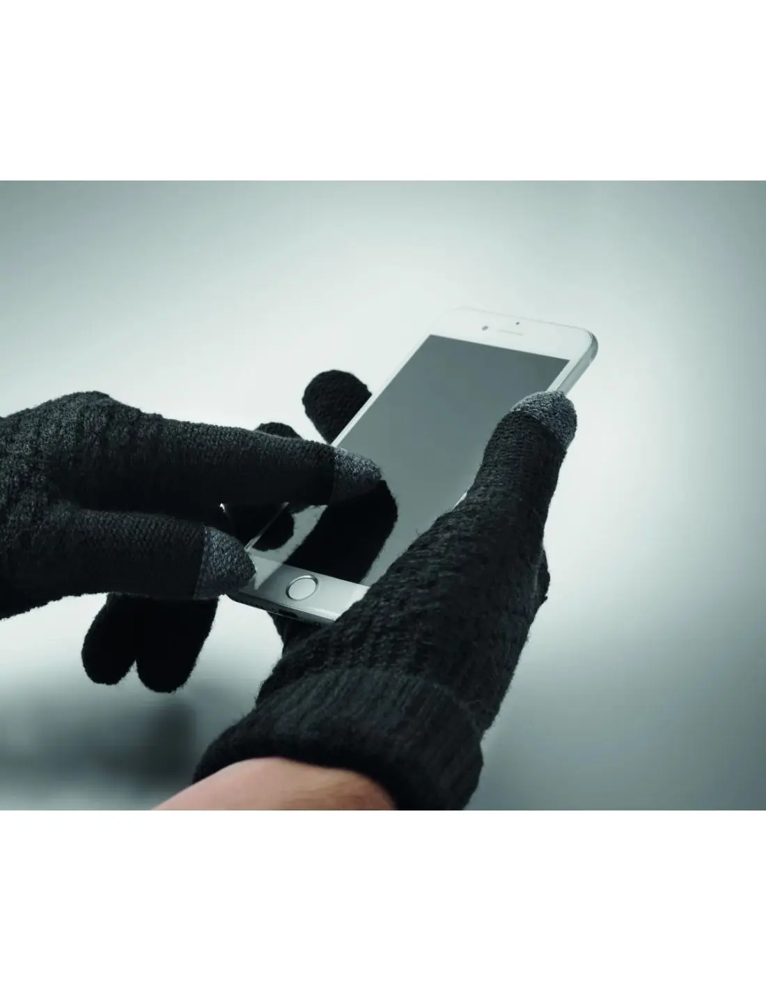 Guantes táctiles para smartphone en RPET con etiqueta para zona de impresión.
