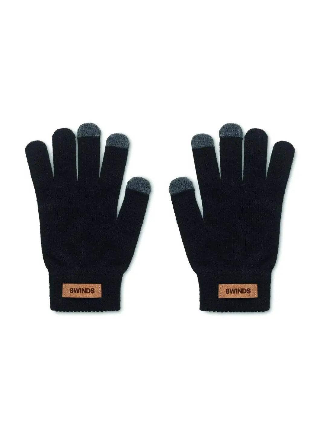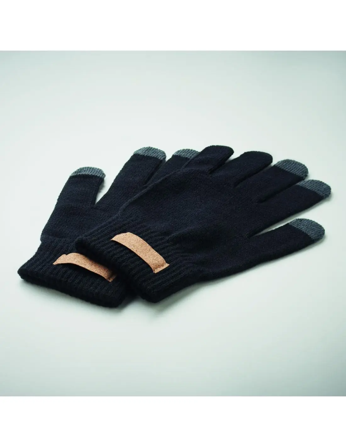 Guantes táctiles para smartphone en poliéster RPET con etiqueta de corcho para zona de impresión. El corcho es un material natural, debido a su nat…