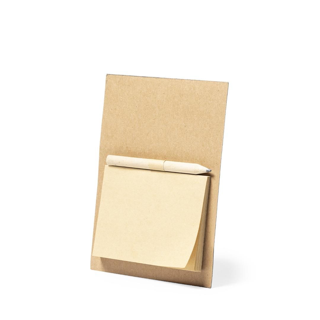 Imán para notas de línea nature. Fabricado en resistente papel reciclado, incluye minilápiz de madera y bloc de notas con 40 hojas lisas en color...